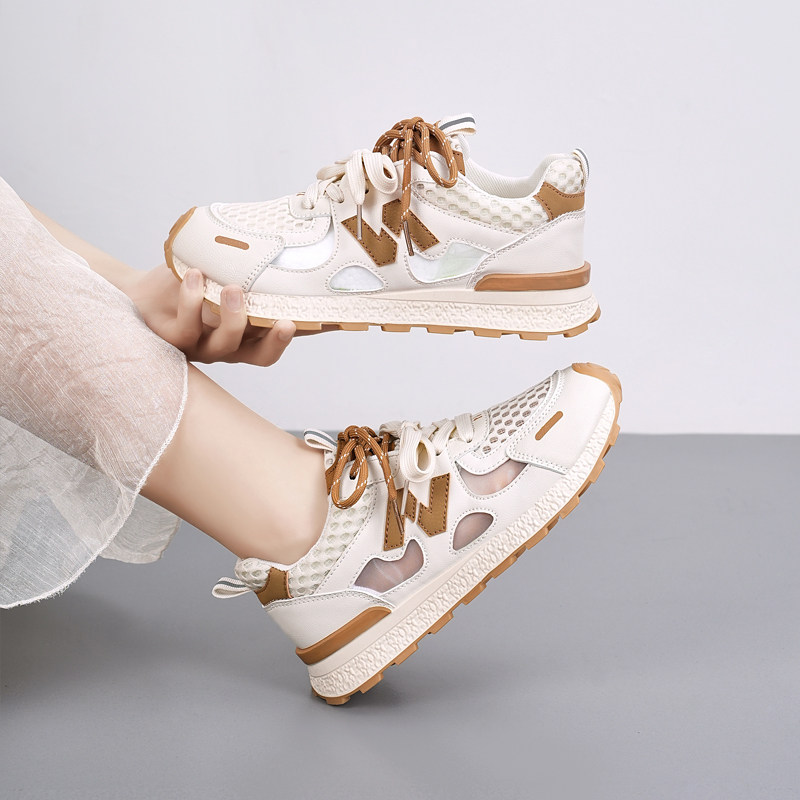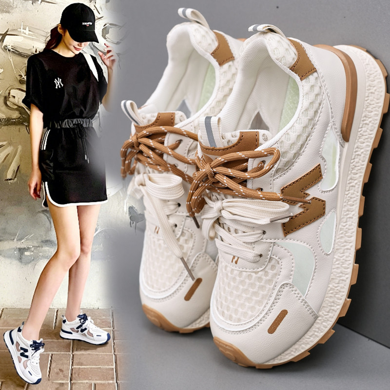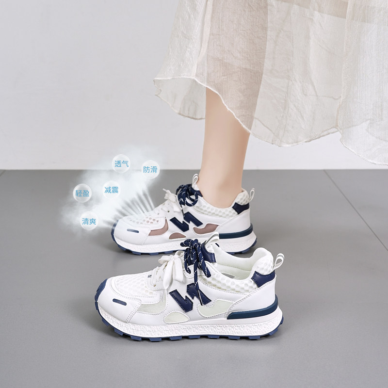 夏季网面透气女鞋薄款运动休闲鞋厚底老爹鞋女款2026新款凉单鞋
