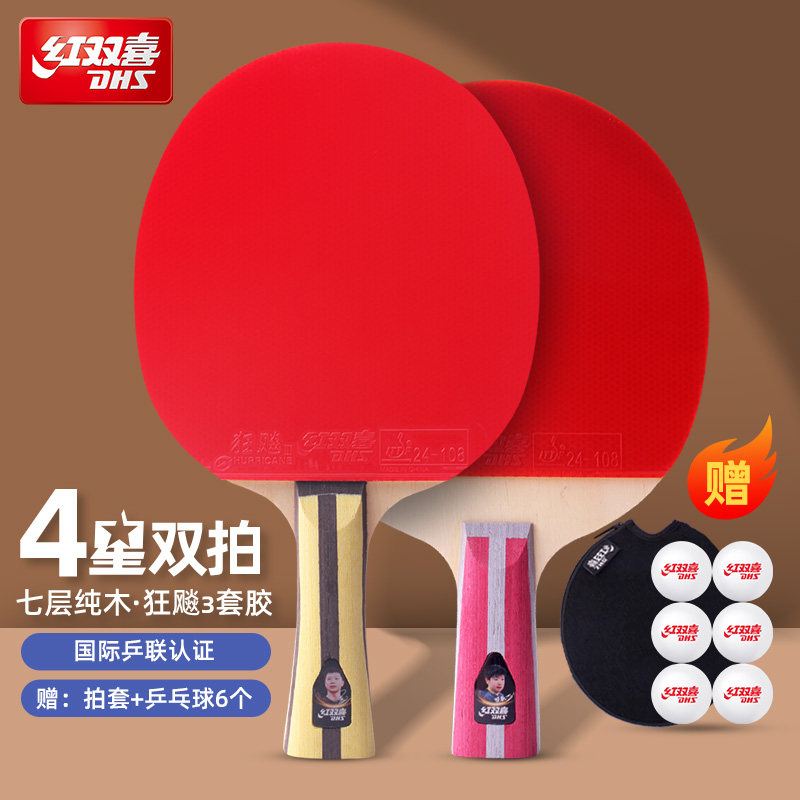 红双喜官方正品乒乓球拍三星4星儿童学生初学进阶直横拍双拍单拍