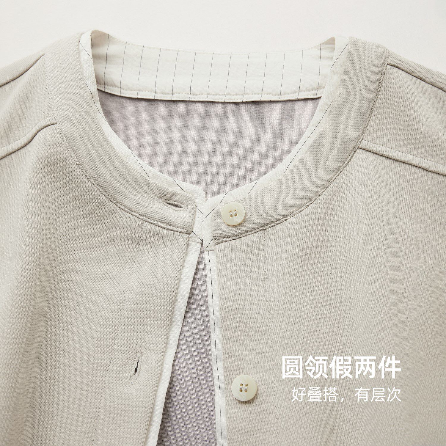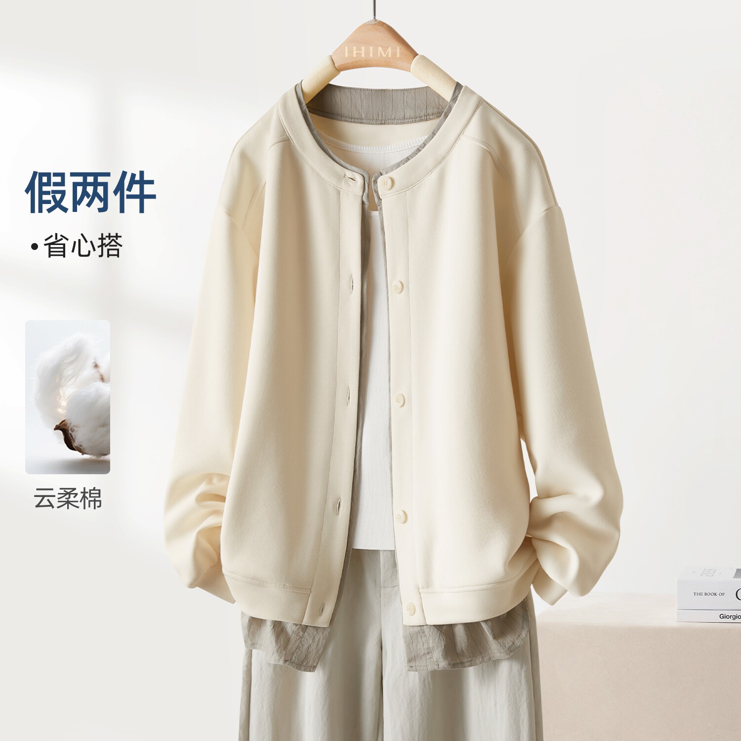 IHIMI海谧假两件条纹拼接圆领卫衣外套女款春季百搭宽松休闲上衣