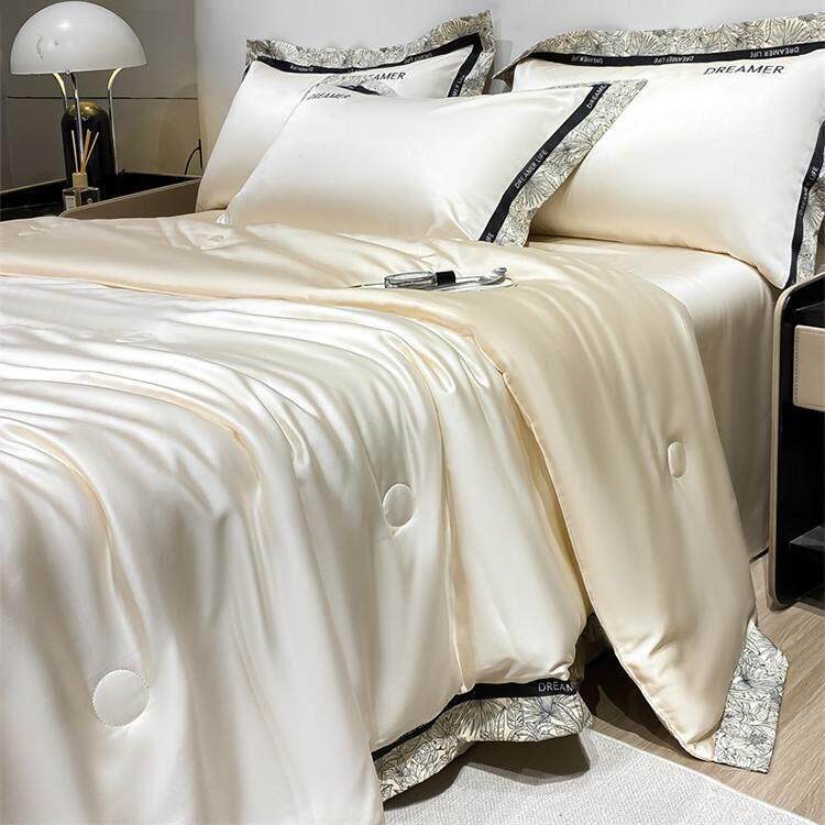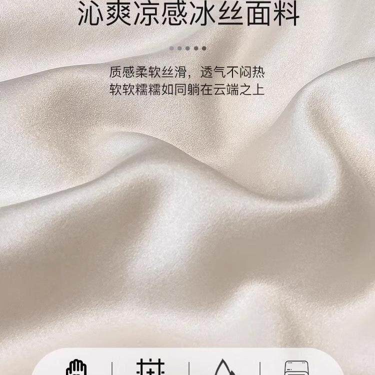 夏天冰丝夏凉被四件套轻奢高级感床笠款可机洗空调被双人冷气被芯
