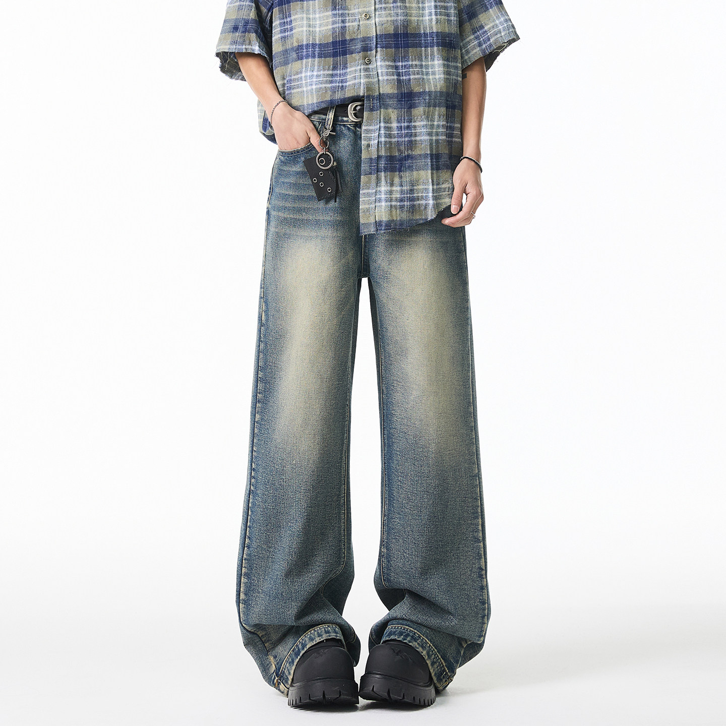 GENIOLAMODE美式复古猫须牛仔裤男士2026春季新款宽松直筒阔腿裤