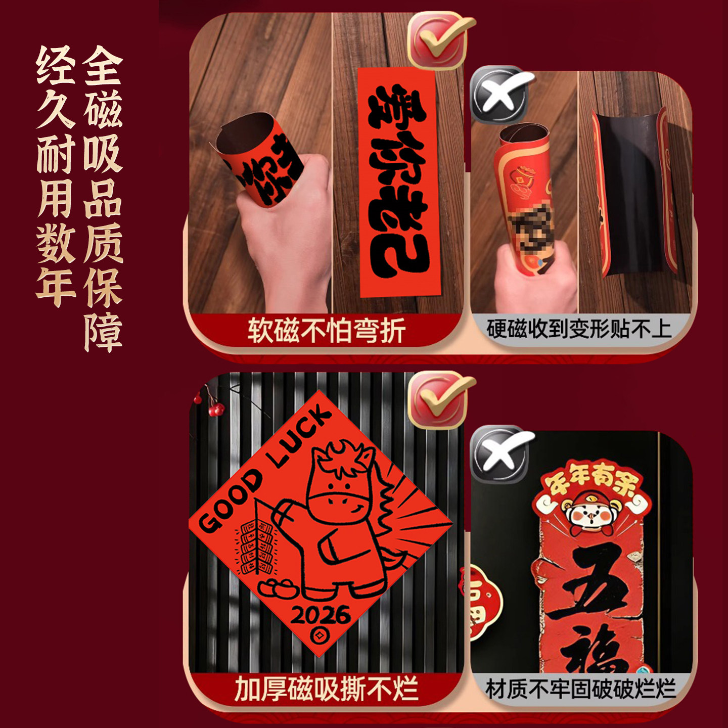 马年磁吸对联2026新款可爱卡通趣味创意春联入户门福字贴新年装饰