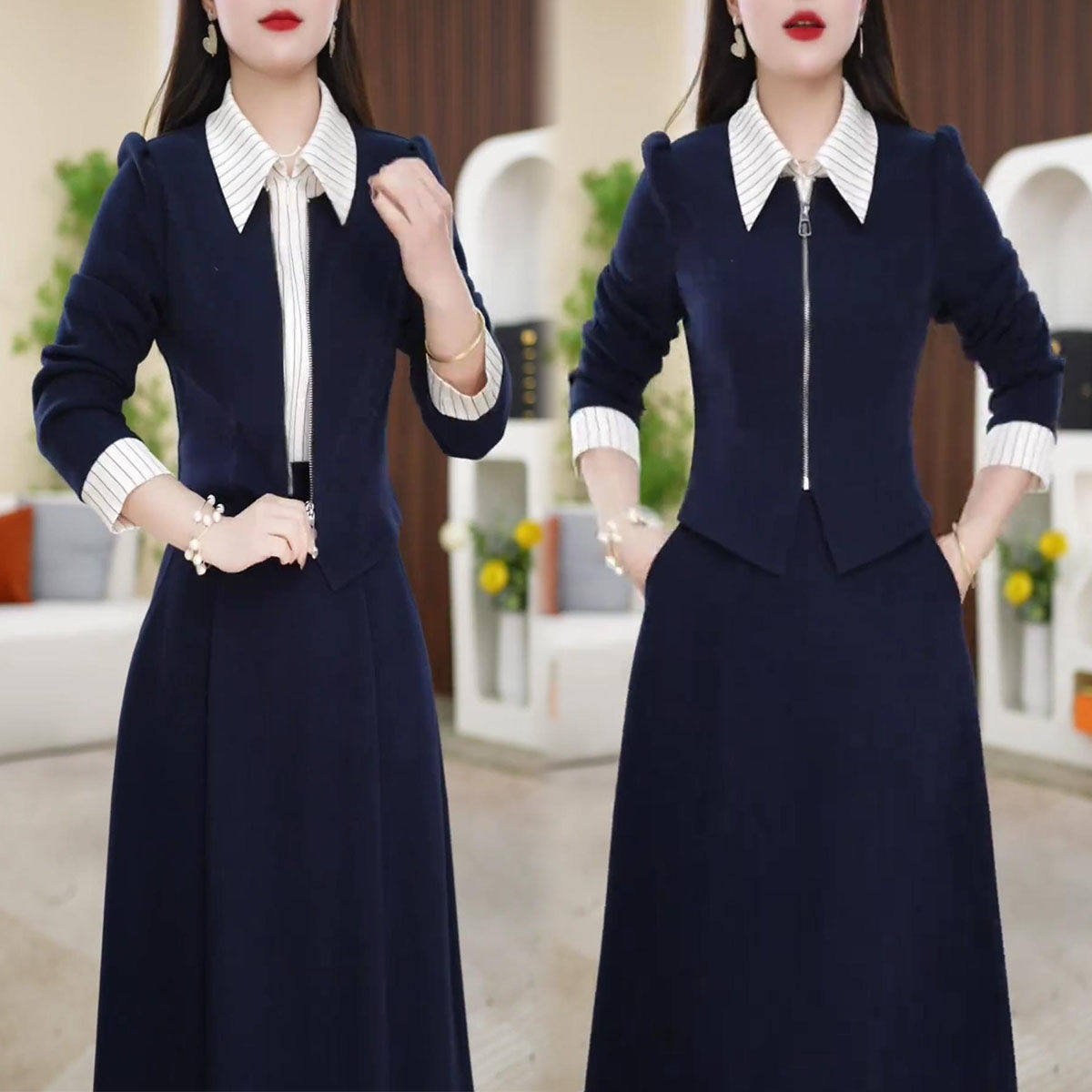时尚长袖连衣裙女2026春季新款气质显瘦设计感翻领假两件休闲裙子