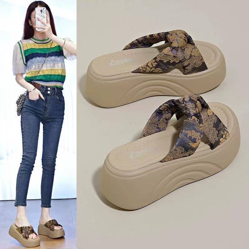 2026新款厚底凉拖鞋女夏外穿配裙子小个子增高女士不累脚绝美坡跟
