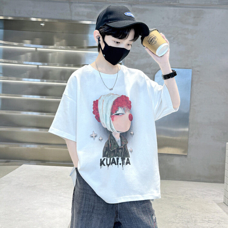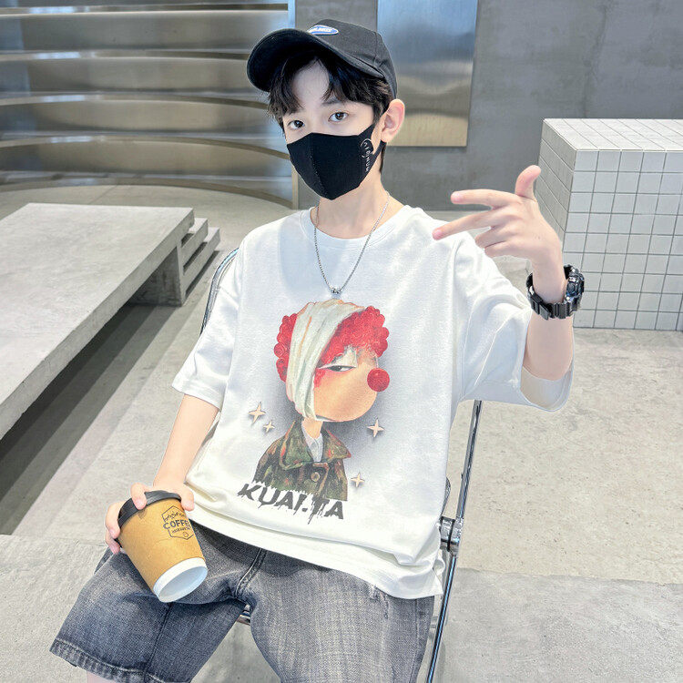 男童短袖T恤夏季薄款2026新款男孩中大童痞帅卡通纯棉上衣半袖潮t