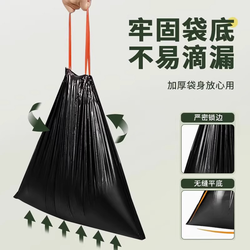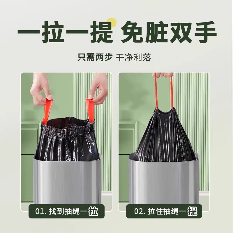 垃圾袋抽绳式家用加厚手提厨房宿舍用学生大号黑色塑料袋提拉收口