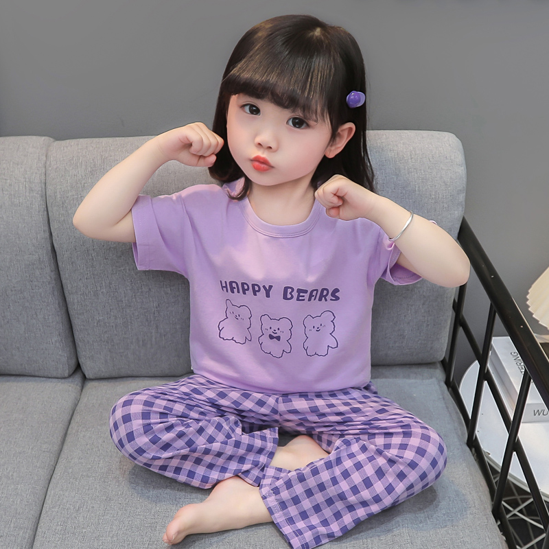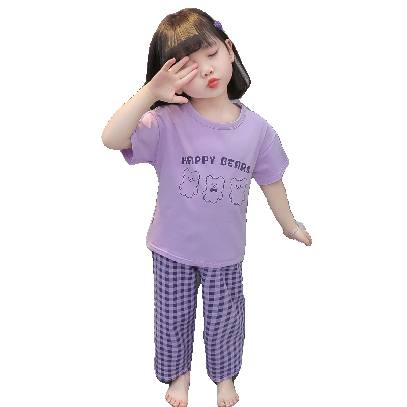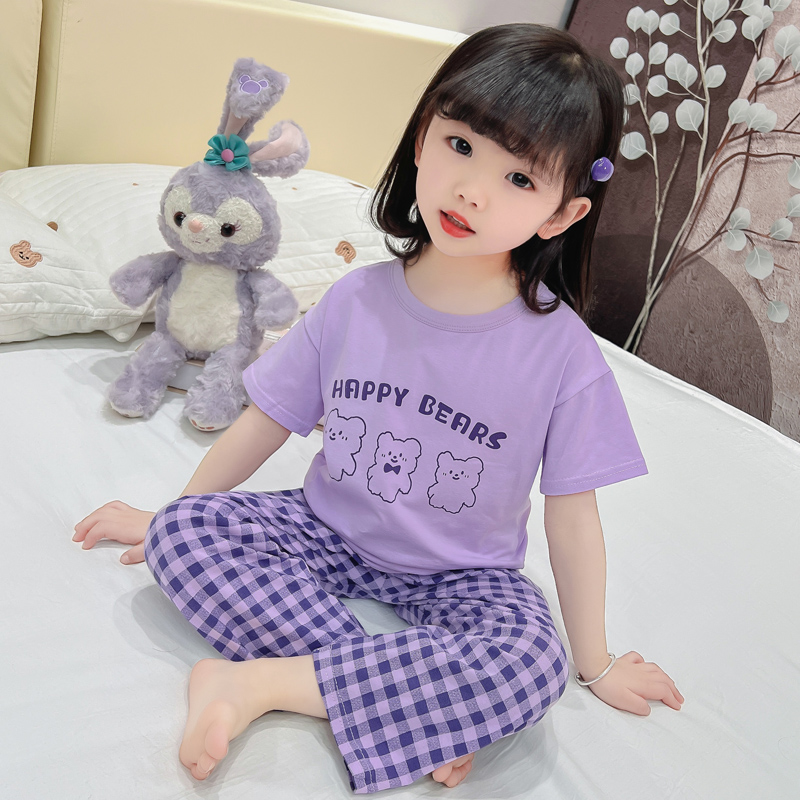 女童睡衣夏季薄款纯棉套装2025新款女孩空调服夏款儿童短袖家居服