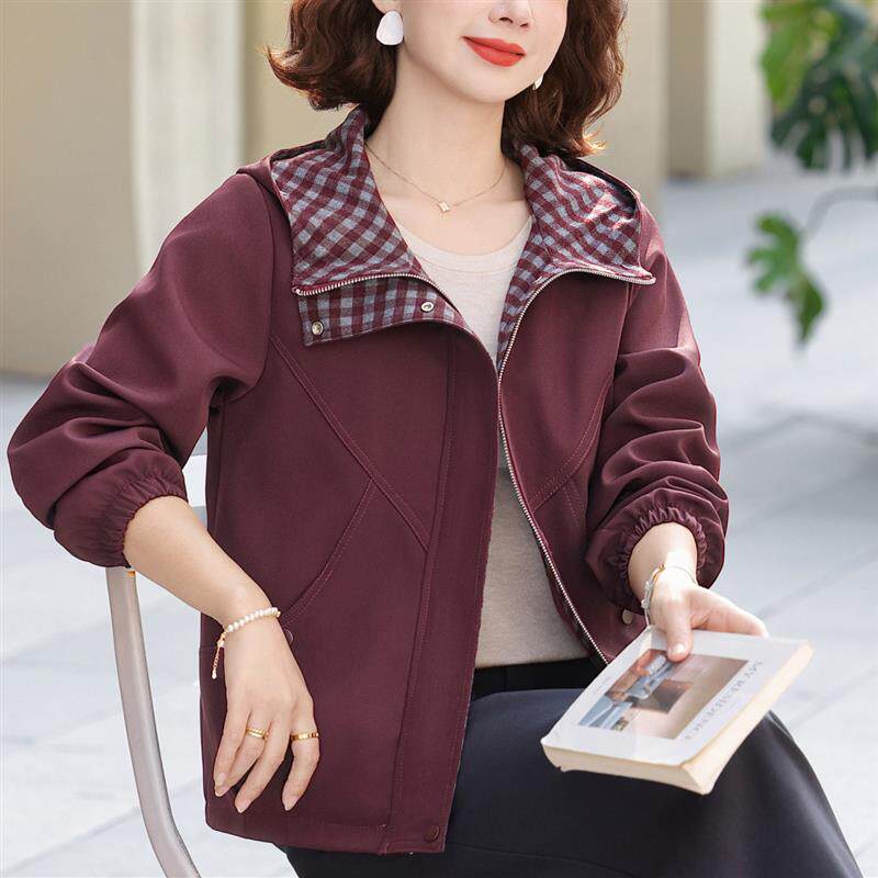 妈妈春装外套洋气时尚2026新款中老年女装休闲连帽风衣薄款上衣服