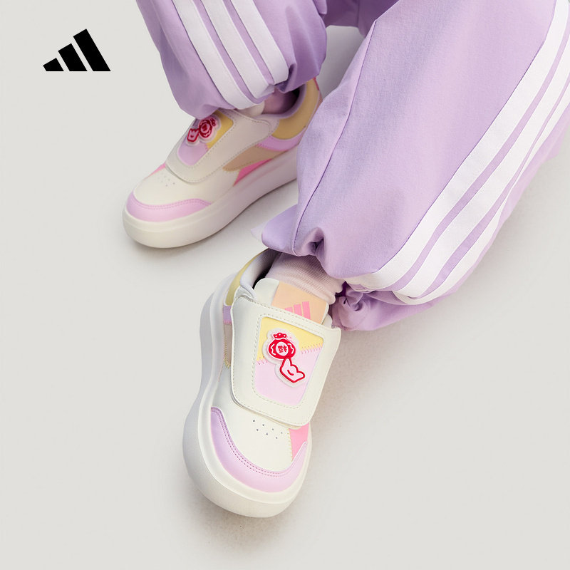 adidas阿迪达斯粉色童鞋2026新年鞋子魔术贴舒适运动鞋休闲板鞋