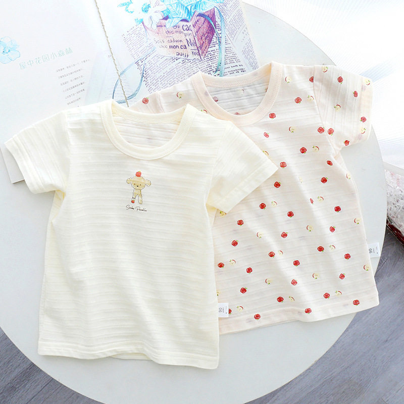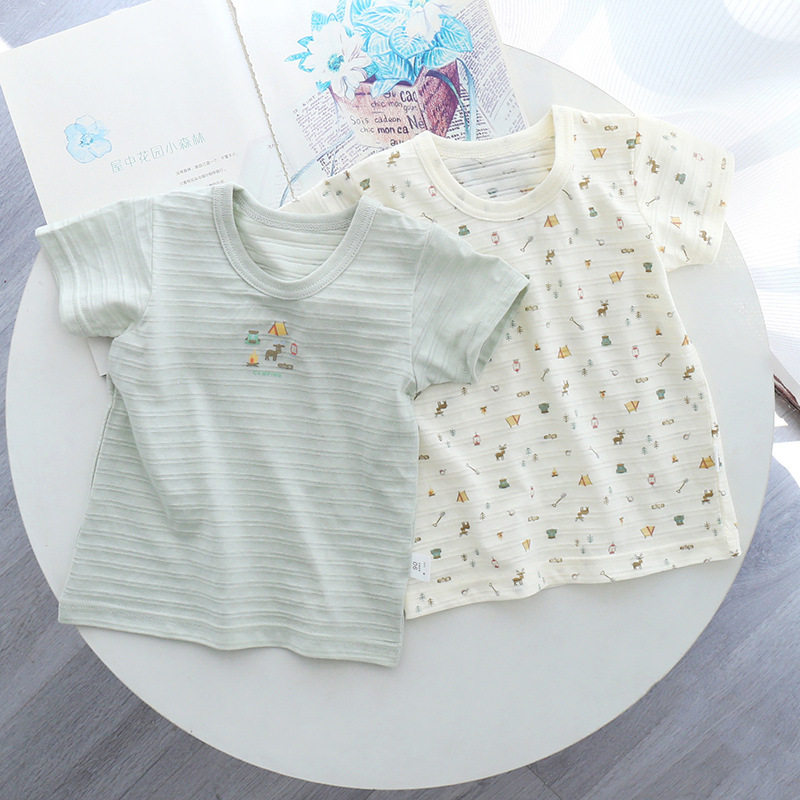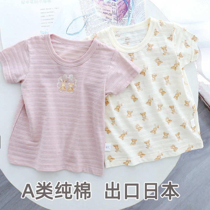日系生日城夏季儿童薄款短袖 纯棉a类竹节棉透气男童女童半袖t恤