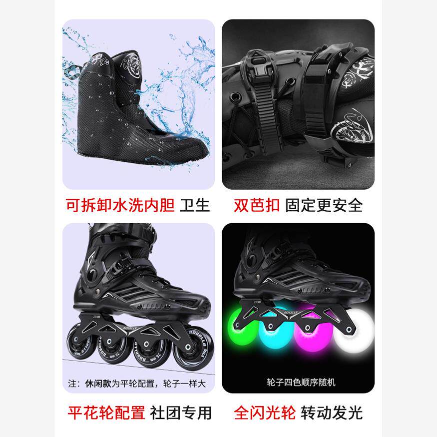 洛神轮滑鞋成人男女直排轮初学者溜冰鞋成年大学生社团旱冰平花鞋