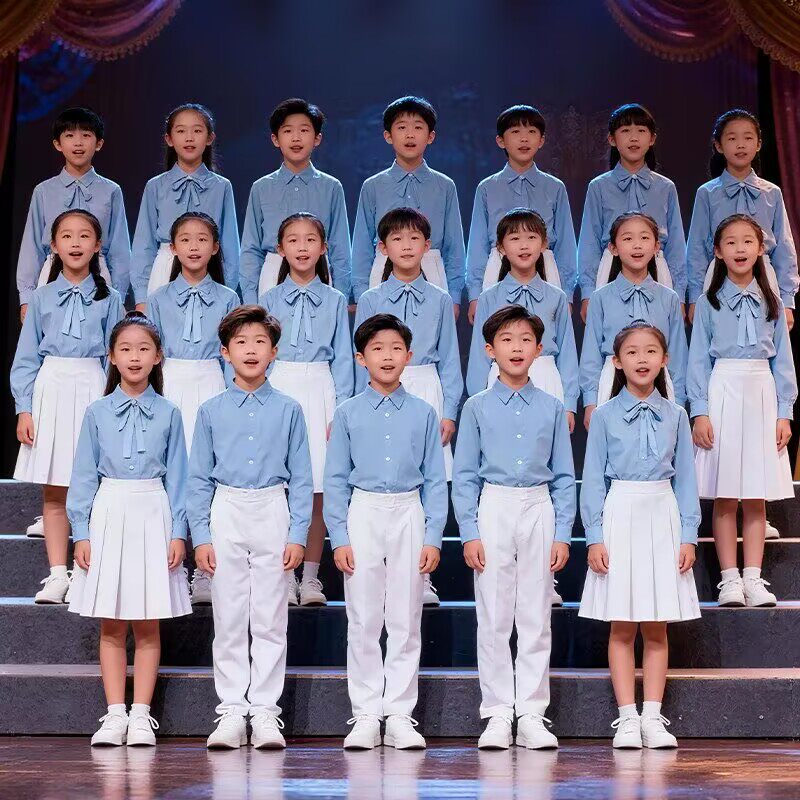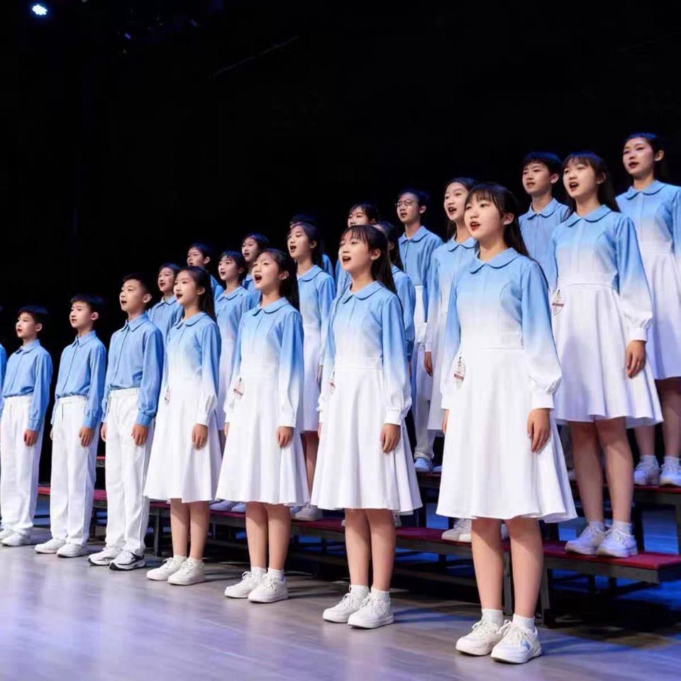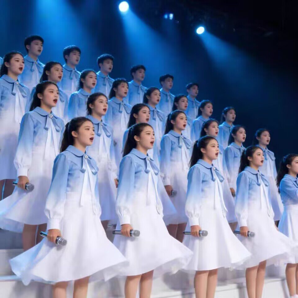 初高中学生成人蓝色爱国合唱团诗歌朗诵比赛演出服演讲服装班服女