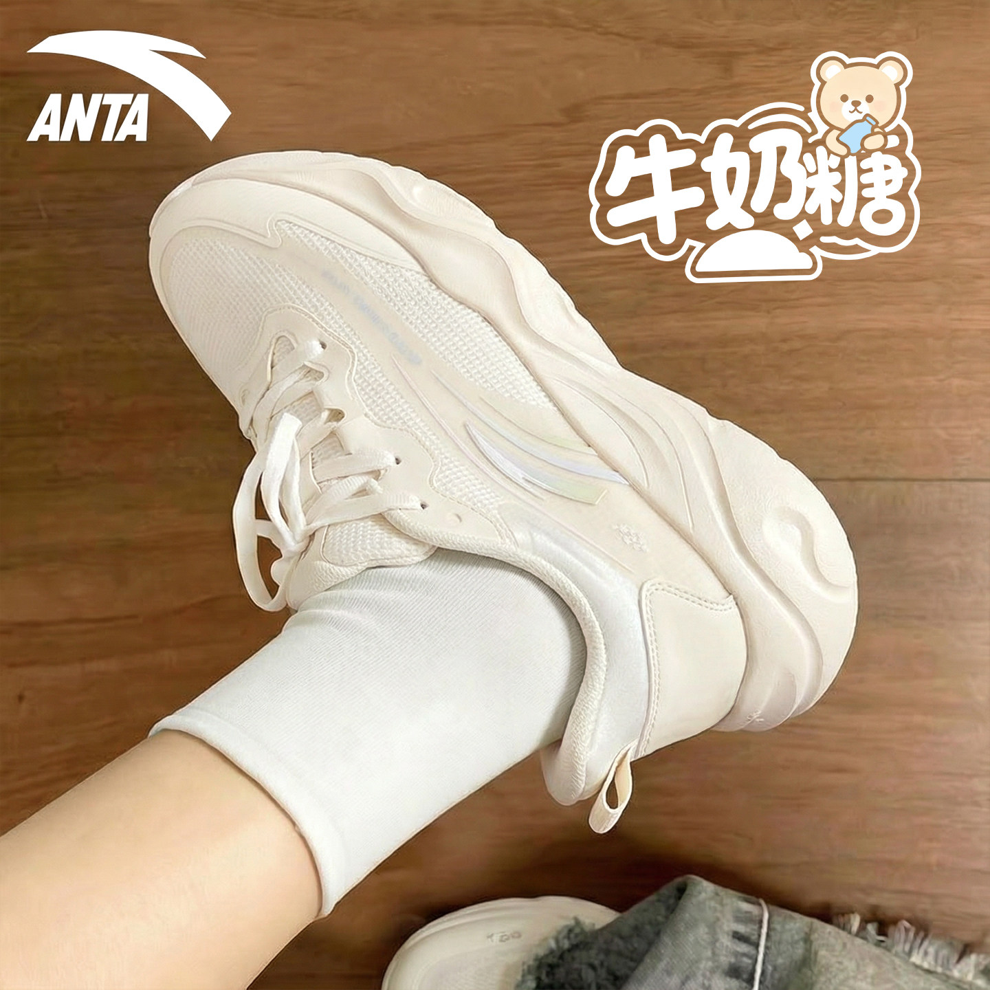 安踏女鞋跳绳鞋2026新款牛奶糖夏季中考体测网面透气跑鞋运动鞋女