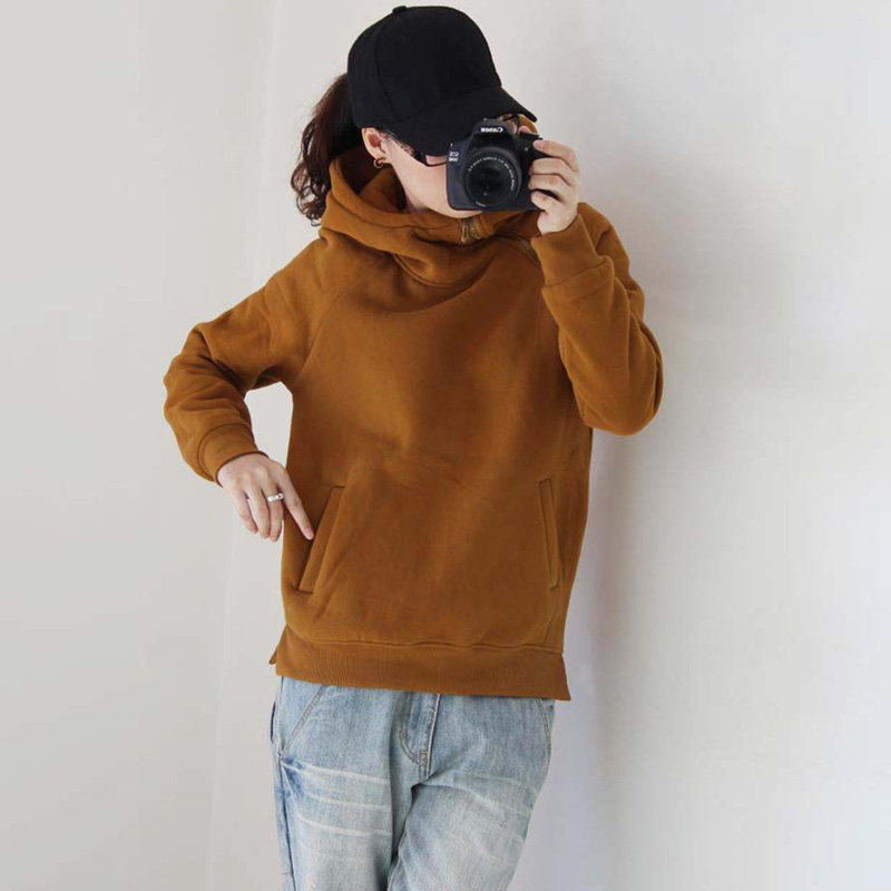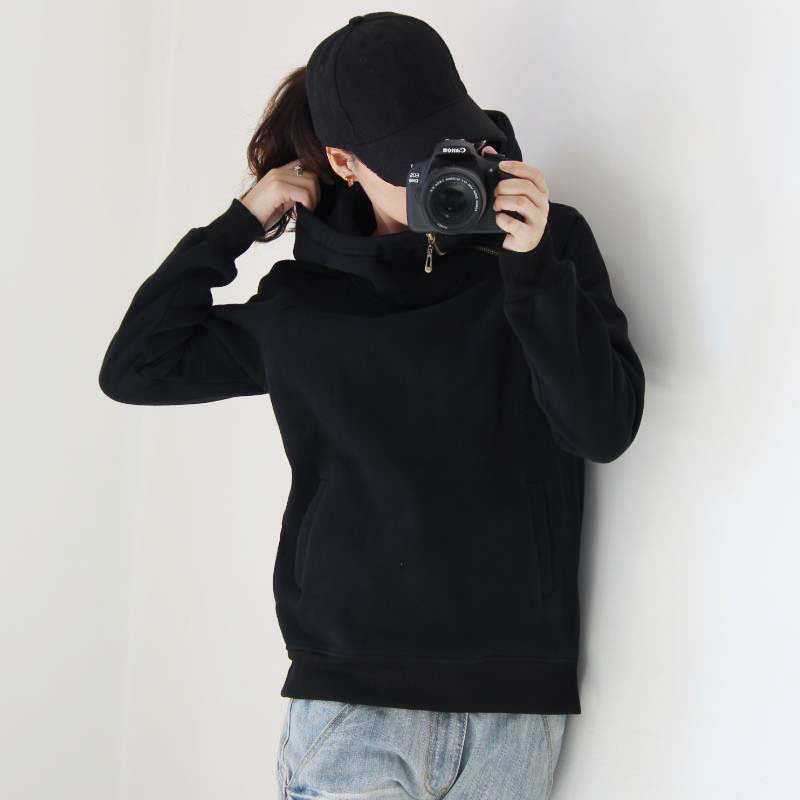 2024冬季新款加绒加厚连帽拉链设计短款纯棉卫衣T恤宽松外套女