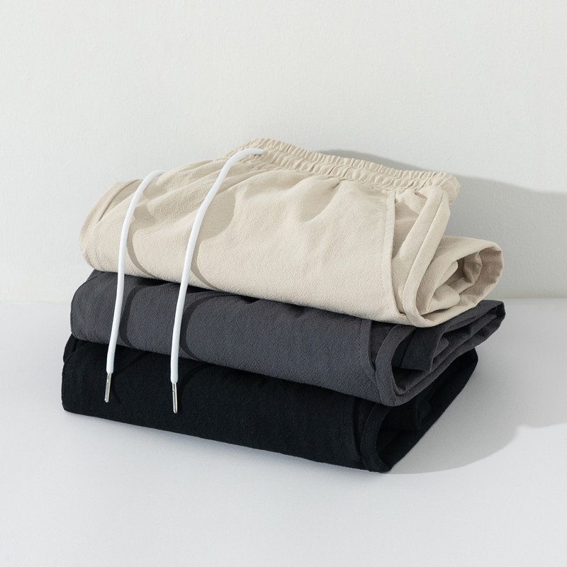 亚麻短裤男款夏季薄款冰丝棉麻中裤夏天男士简约抽绳休闲五分裤子