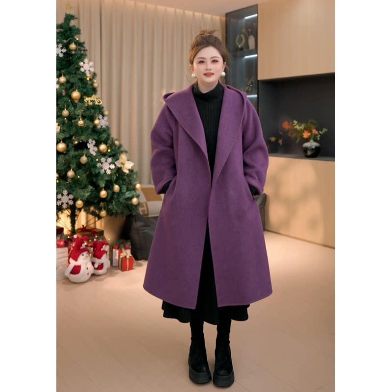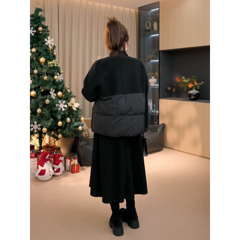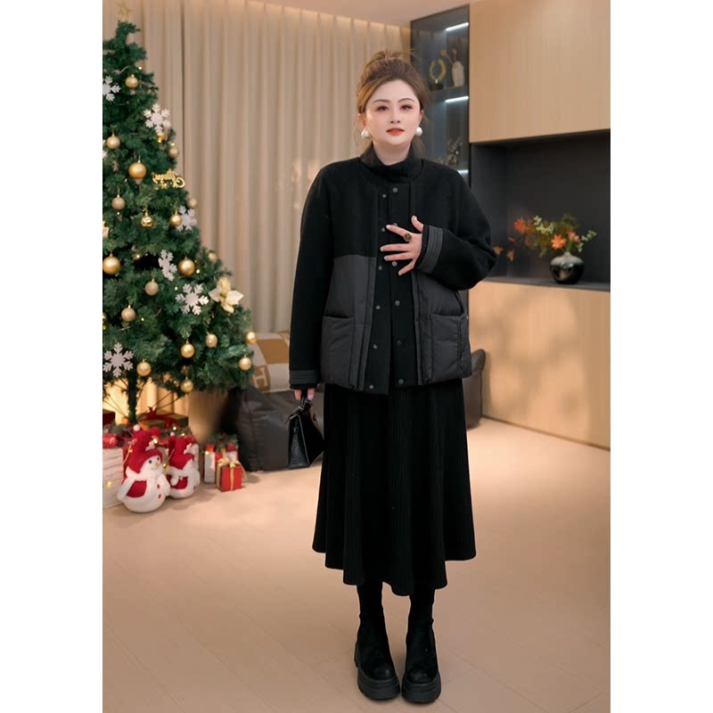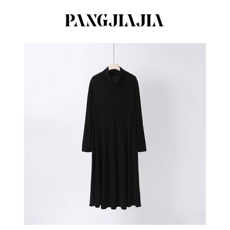【胖佳佳】胖妹妹mm大码女装黑巧耶耶 冬季亮丝华夫格长款连衣裙
