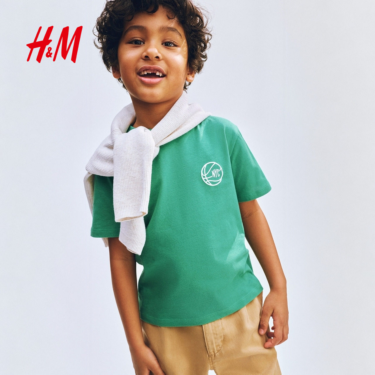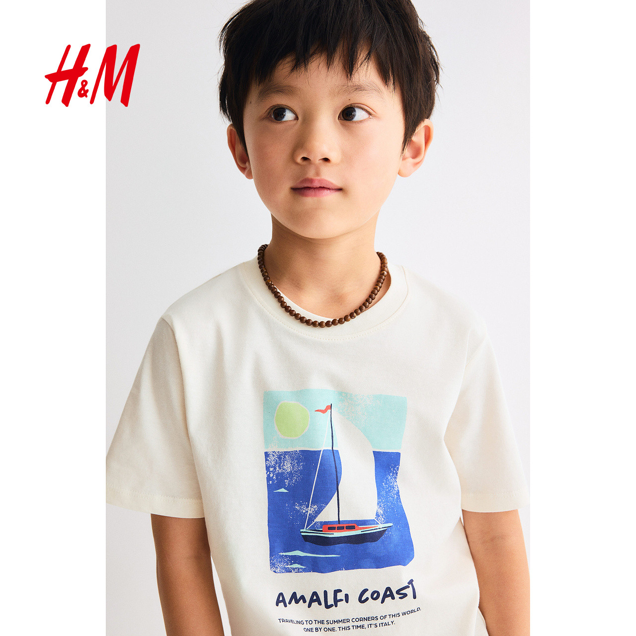 HM童装男童T恤2026春季新款印花运动圆领短袖洋气出游上衣1324846