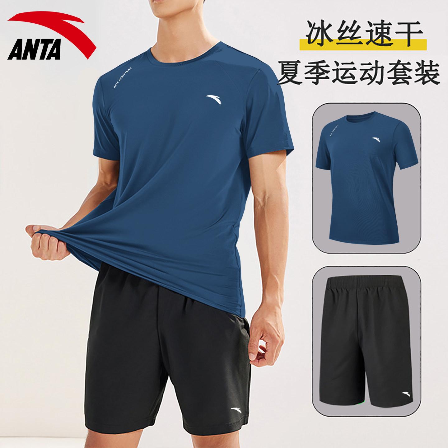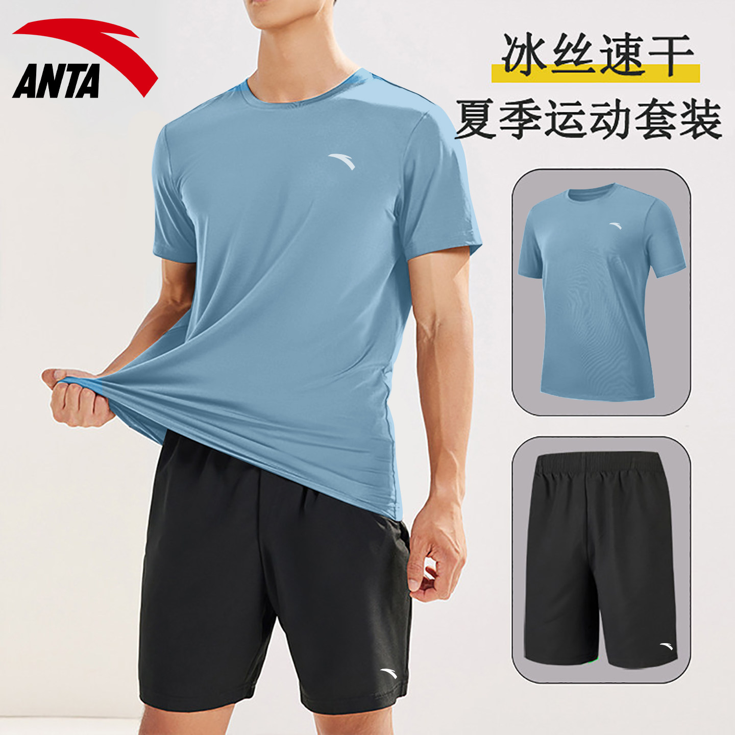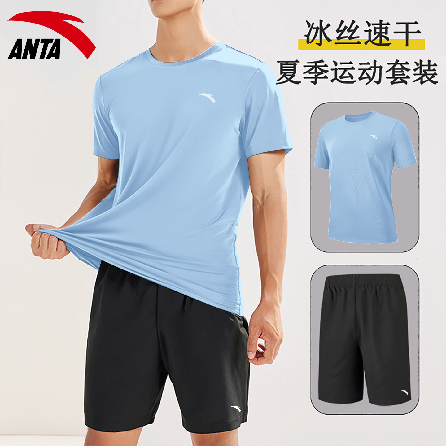 安踏男士健身套装冰丝速干薄款短袖短裤吸汗透气初高中生体测运动