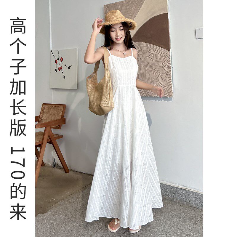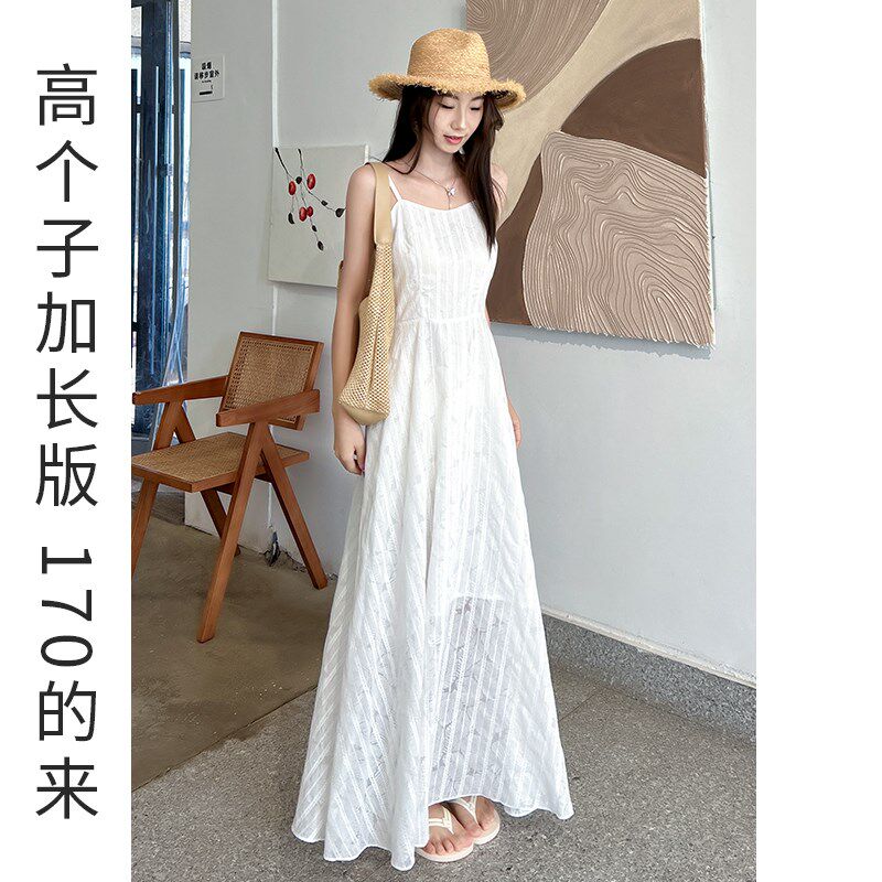 高个子加长版白色吊带裙小众不撞款连衣裙女夏季长裙到脚踝超长款