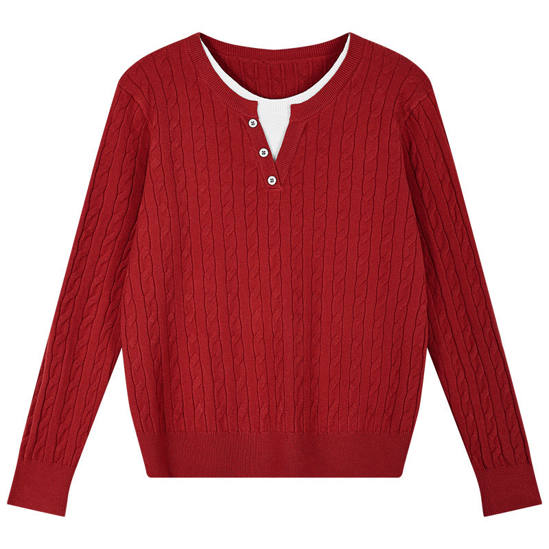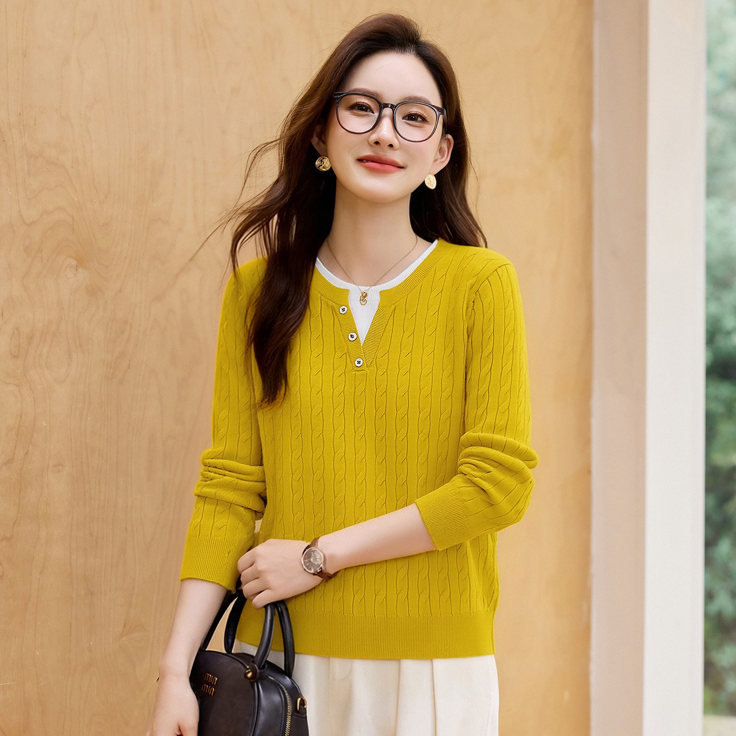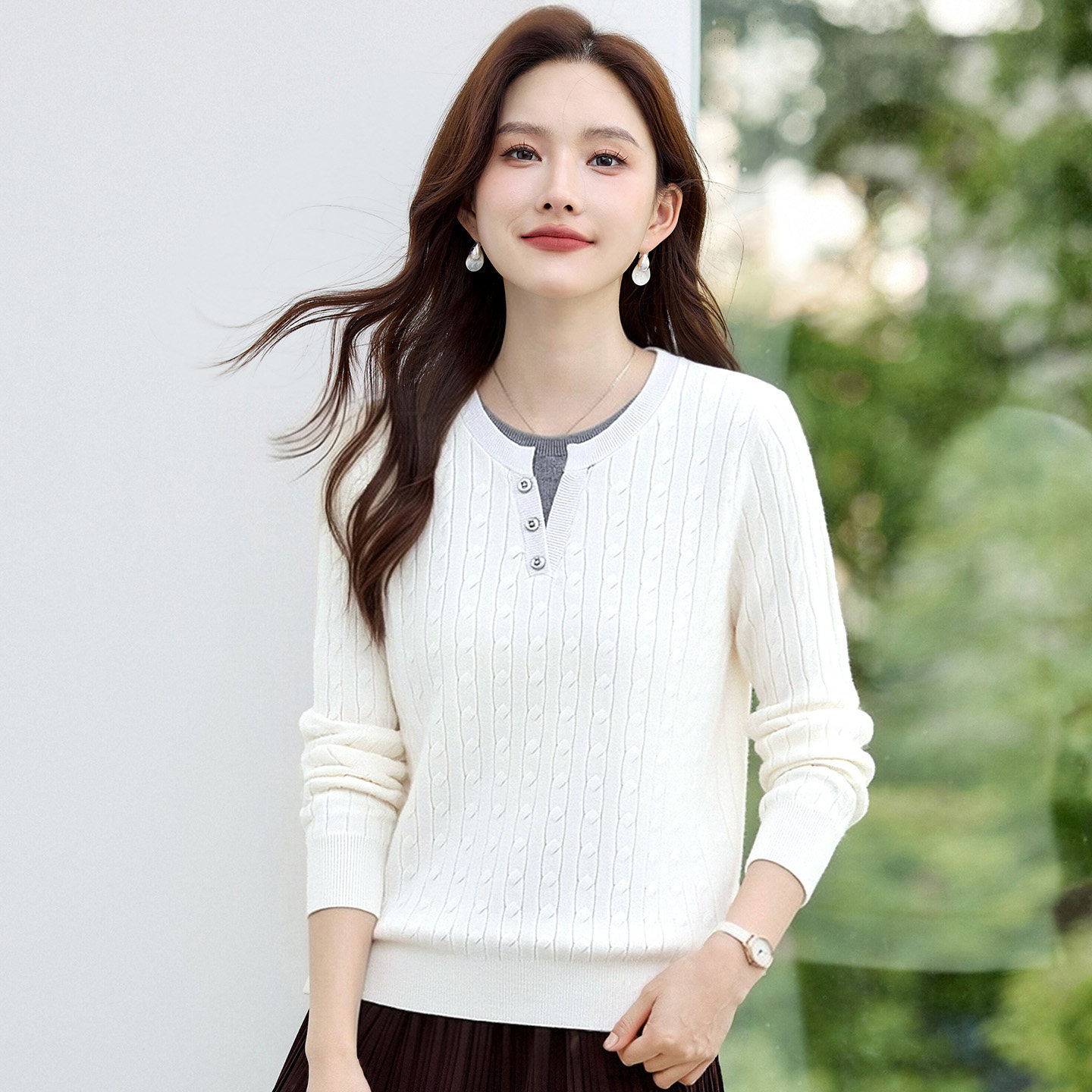 假两件圆领毛衣女款2026新款春季时尚洋气气质薄款针织衫上衣外套