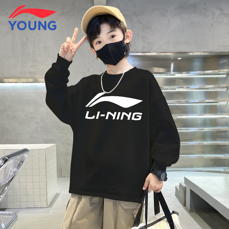 李宁儿童T恤青少年潮流百搭长袖打底衫春季新款男孩卫衣男童上衣