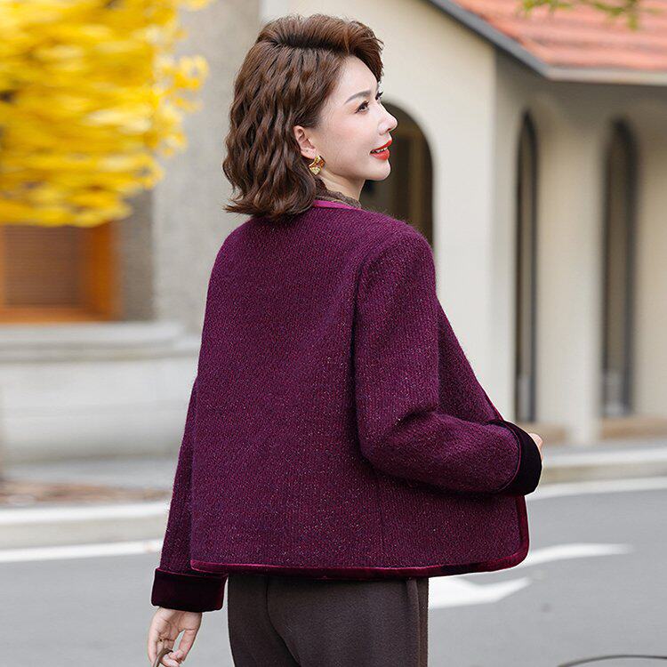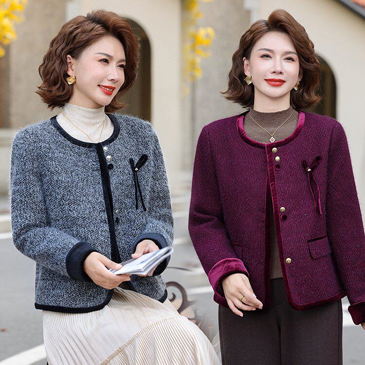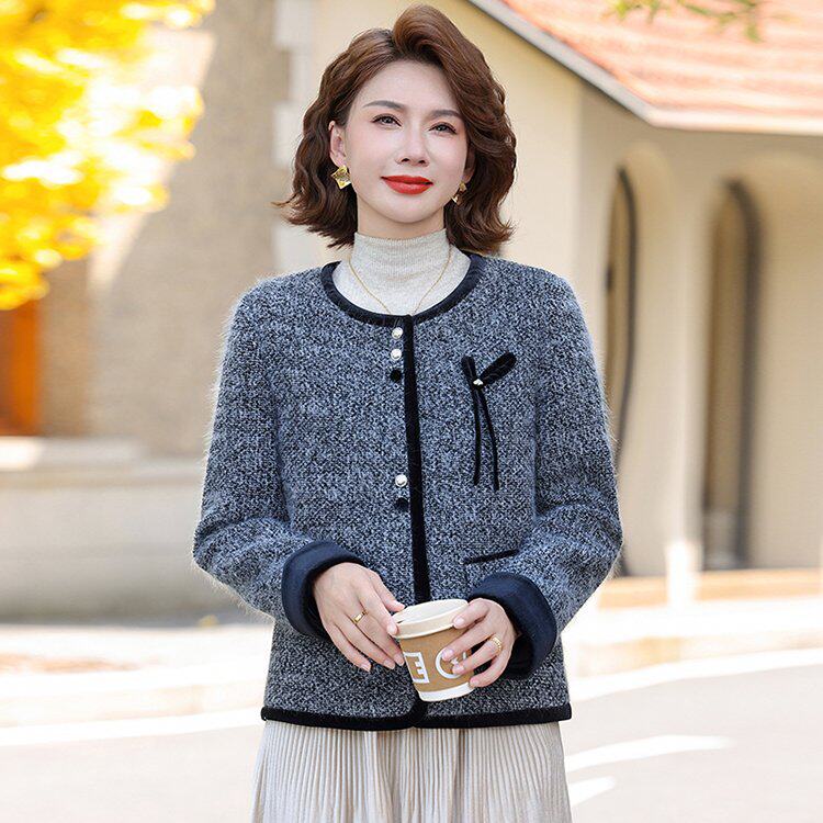 春天时尚妈妈早春外套2026新款中年纯色女款夹克中老年女春装上衣