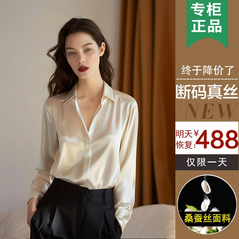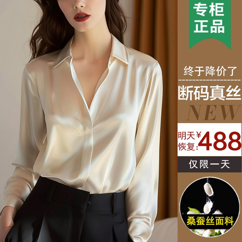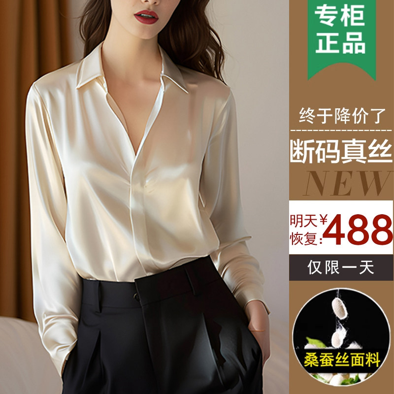 真丝缎面衬衫上衣女早春新款长袖上衣宽松气质高级感垂直职业衬衣