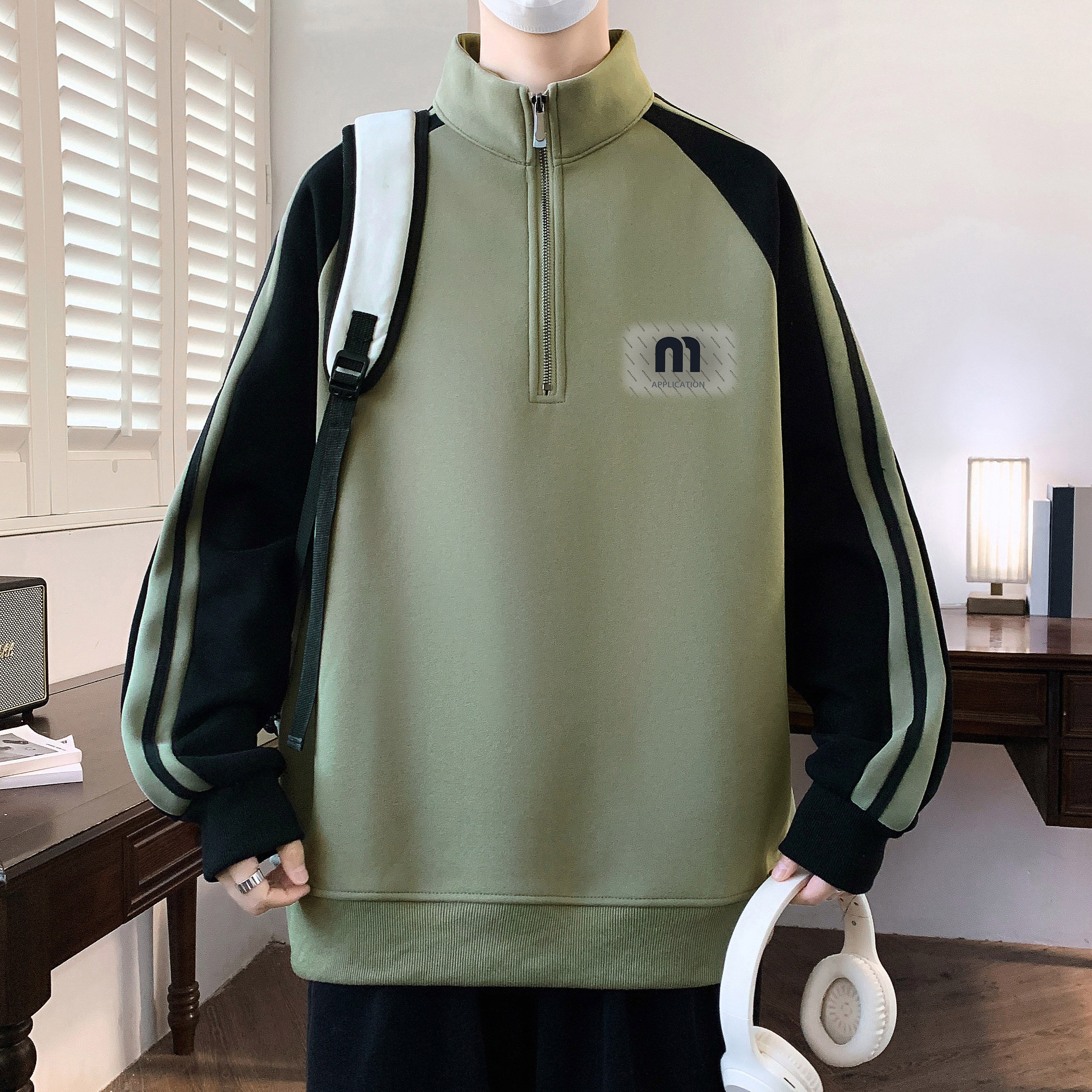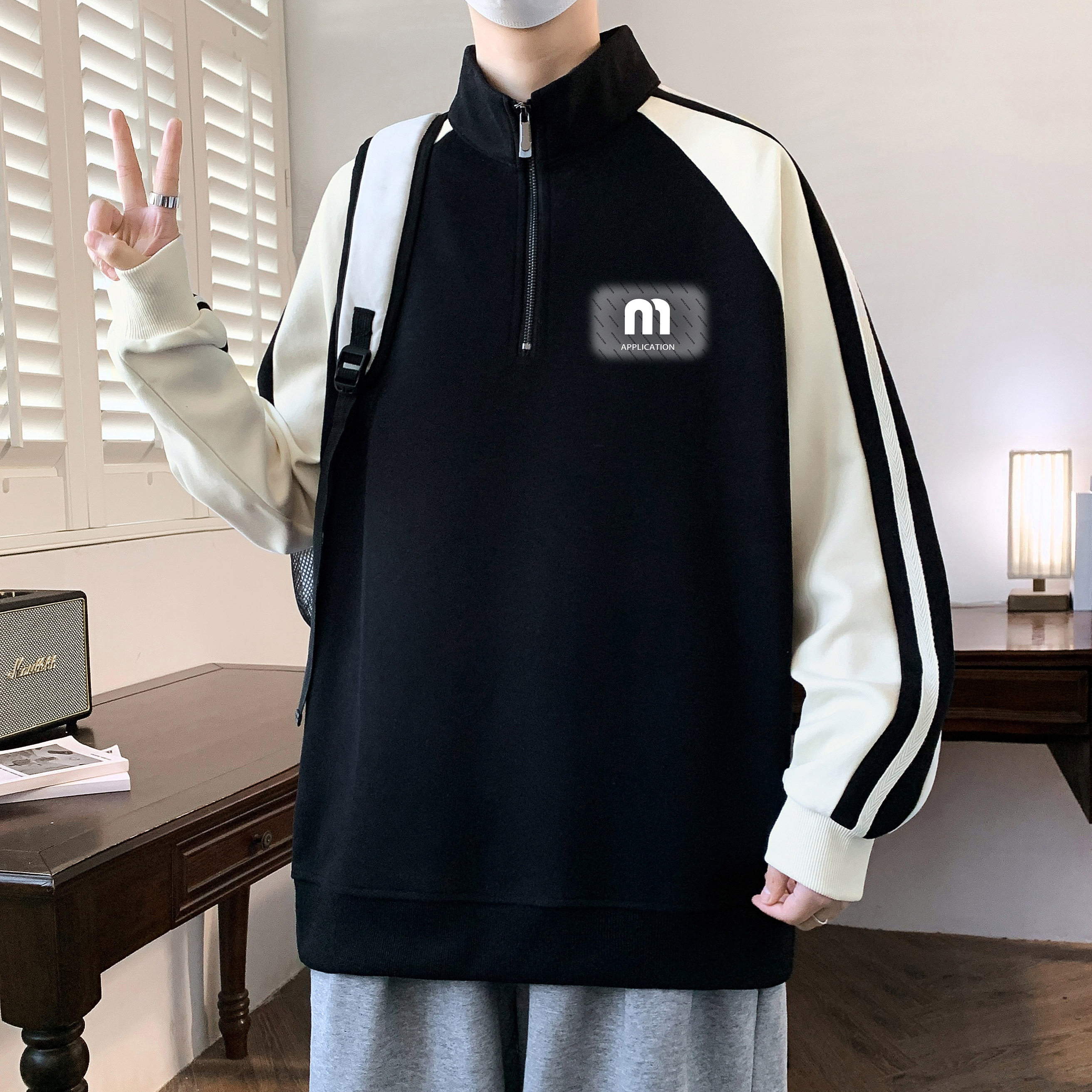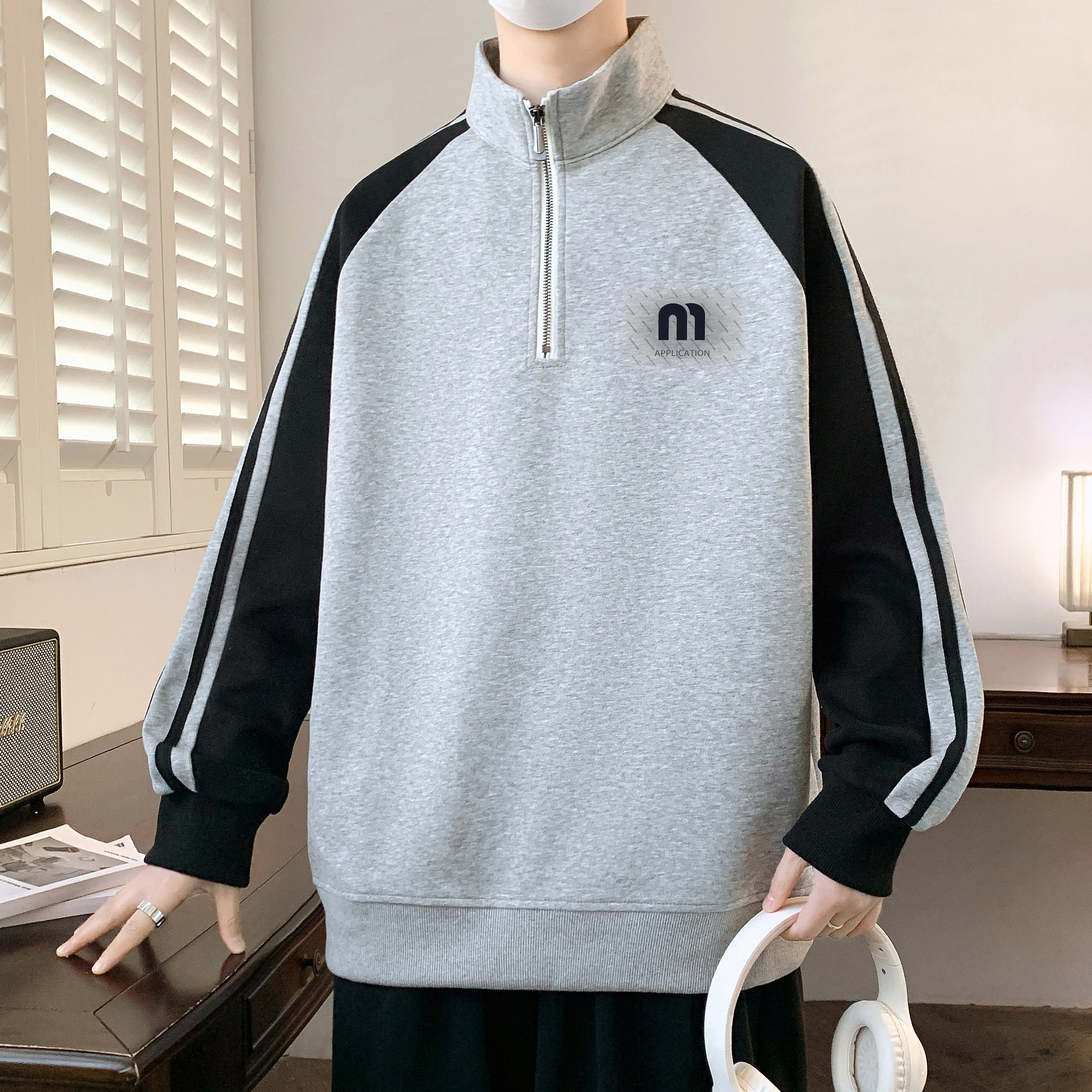 2026春秋新款半拉链卫衣男款青少年加绒立领初高中学生运动风上衣