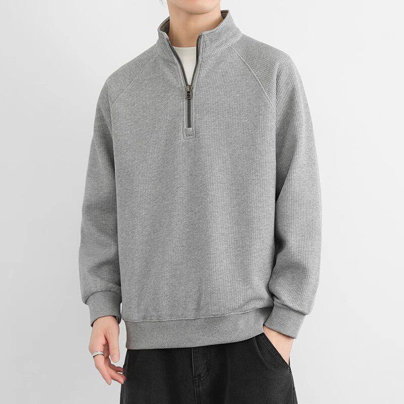 半拉链立领卫衣男款加绒加厚春秋冬季美式复古男士纯色休闲外套男