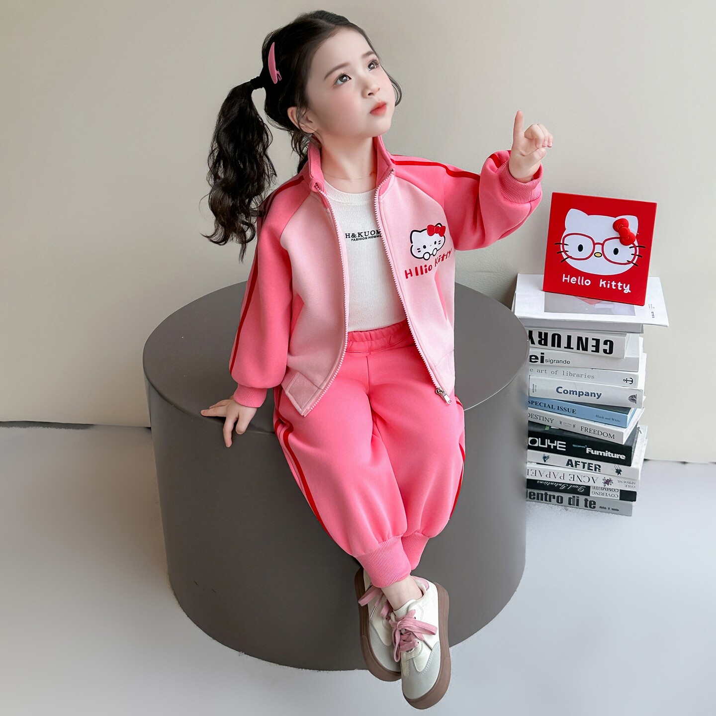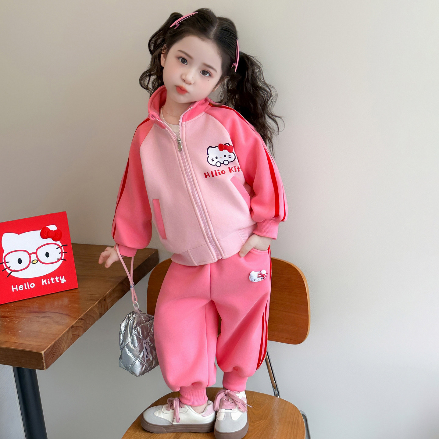女童套装韩系洋派时髦女宝宝猫咪春装2026新款春秋季外套儿童衣服