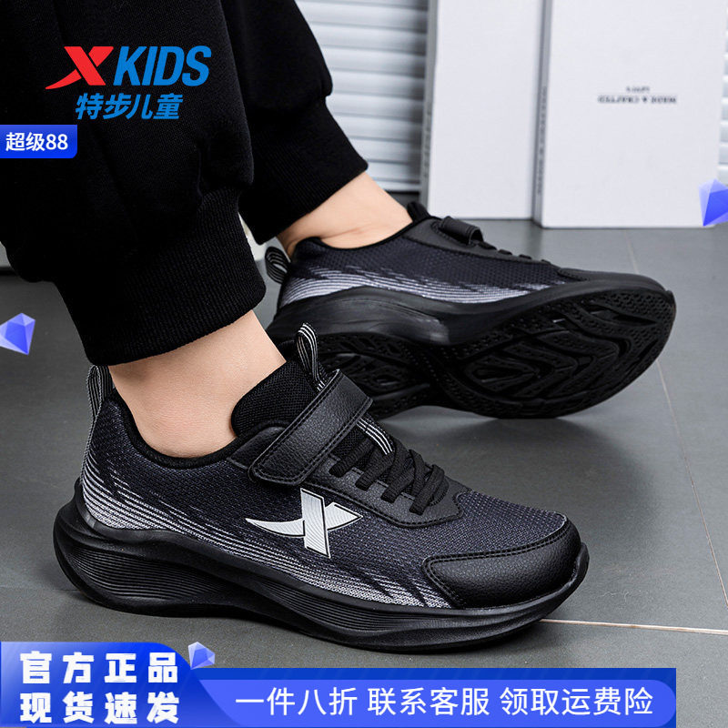 特步儿童男童黑色运动鞋2026年春季旗舰店新款耐磨透气防滑跑步鞋