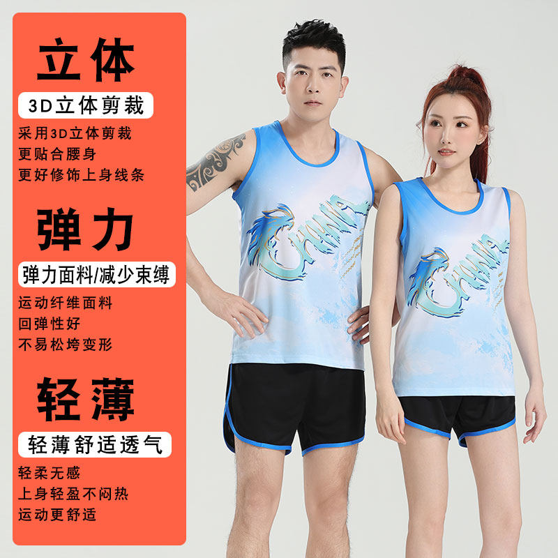儿童田径服套装男女速干马拉松跑步背心短裤成人比赛运动队服定制