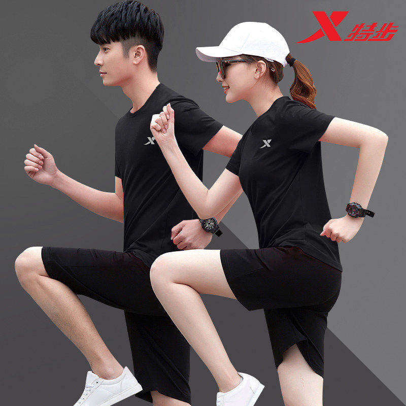 特步运动套装男女款夏季新款速干透气短袖短裤学生中考体测两件套
