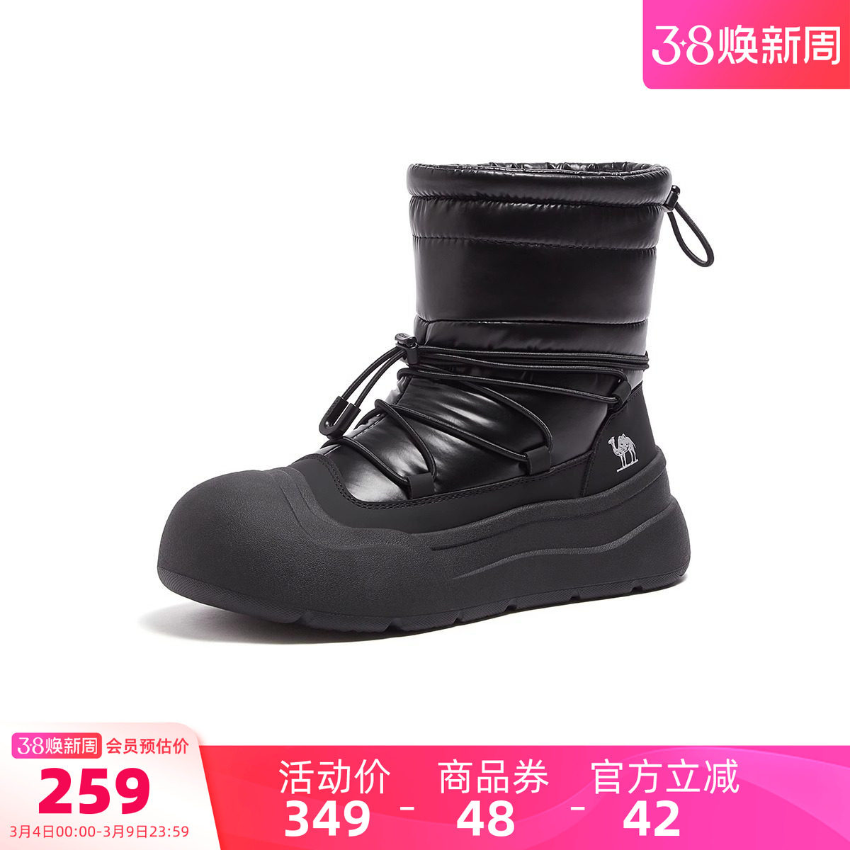 骆驼女鞋2025冬季新款户外雪地靴女款厚底加绒保暖棉鞋中筒短靴子