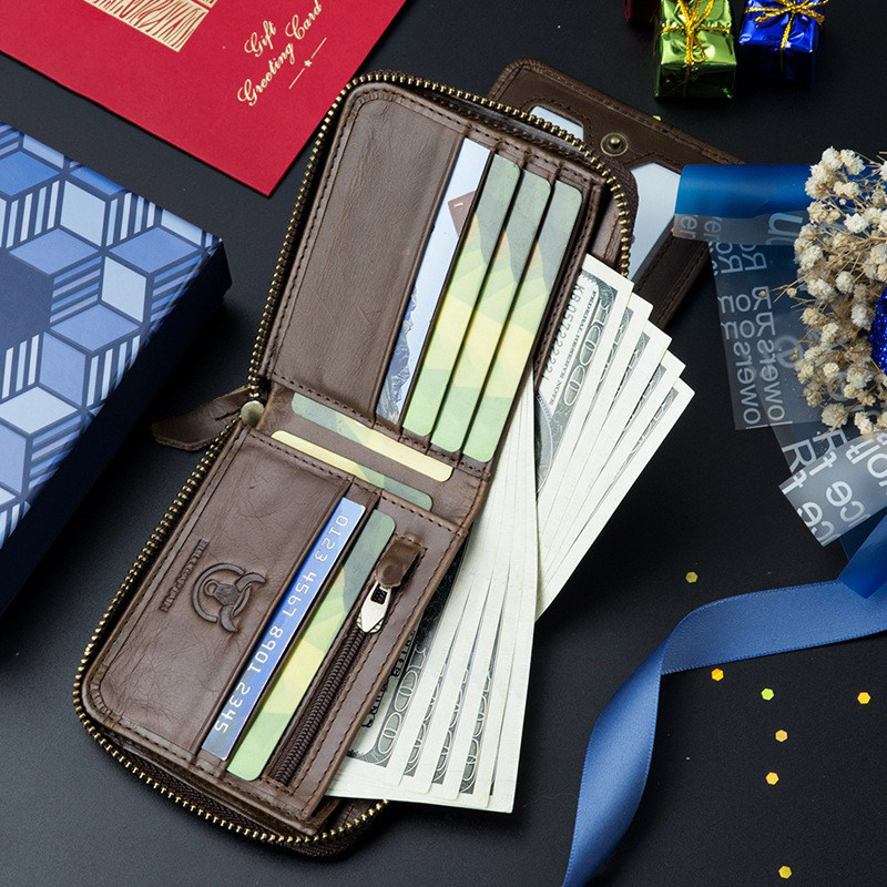 牛船长真皮短款男士钱包头层牛皮拉链钱夹驾驶证大容量多功能卡包