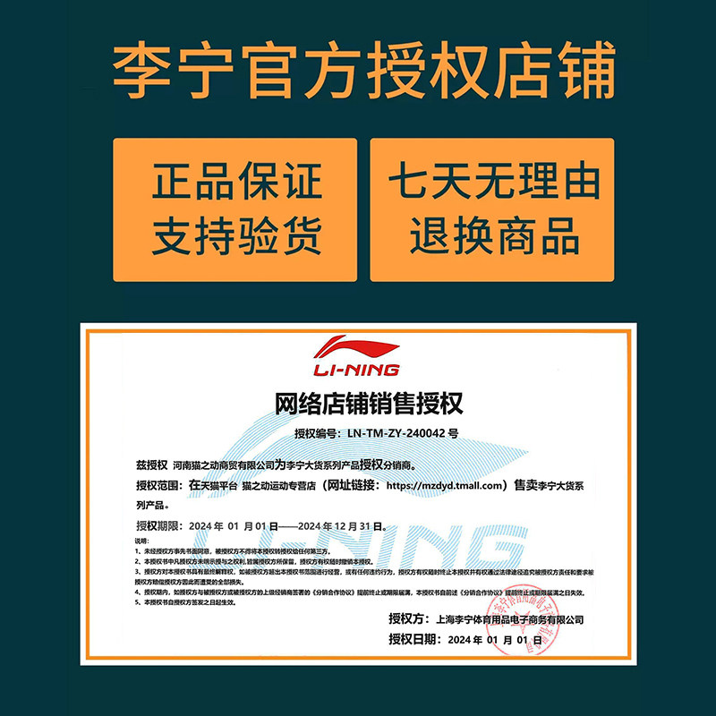 311线报网描述:李宁官方授权店铺,正品保证