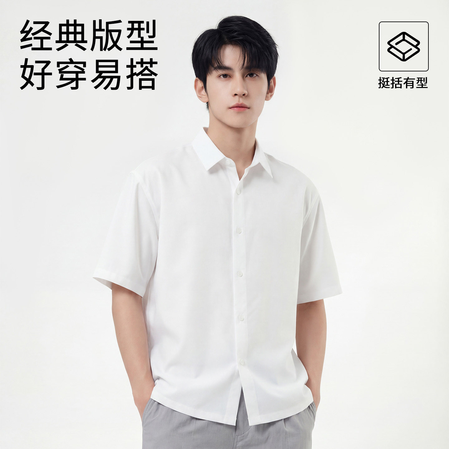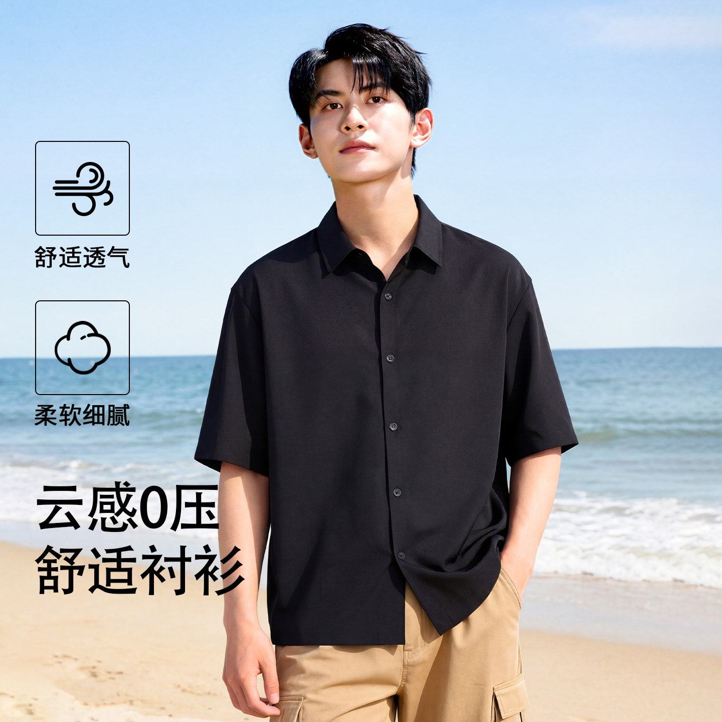 班尼路S&K系列黑色痞帅衬衫男款夏季翻领纽扣短袖衬衣男士外套潮A