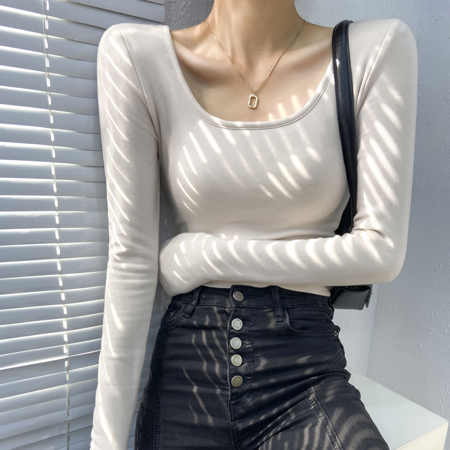 美拉德咖色方领打底衫女带胸垫内搭可外穿高级感加绒加厚磨毛上衣