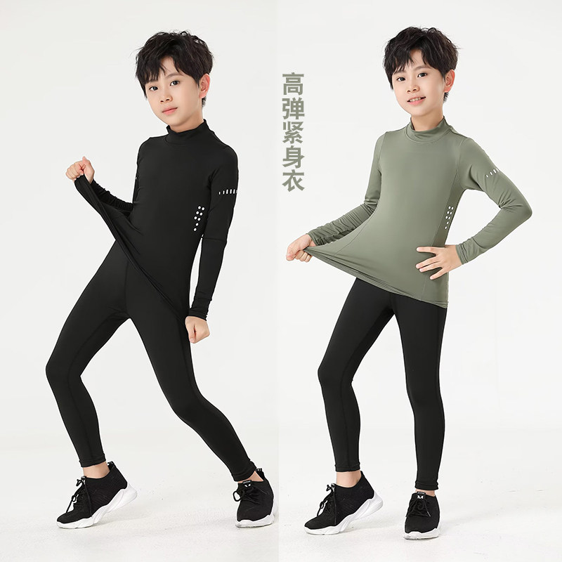 秋冬儿童紧身衣男童篮球运动高弹训练服长袖内搭打底足球健身套装