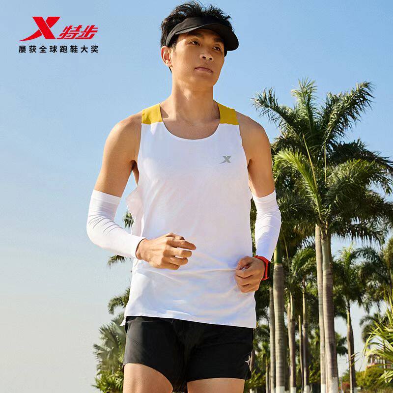 特步男子背心2024新款运动健身透气跑步马拉松速干吸汗