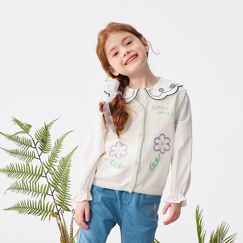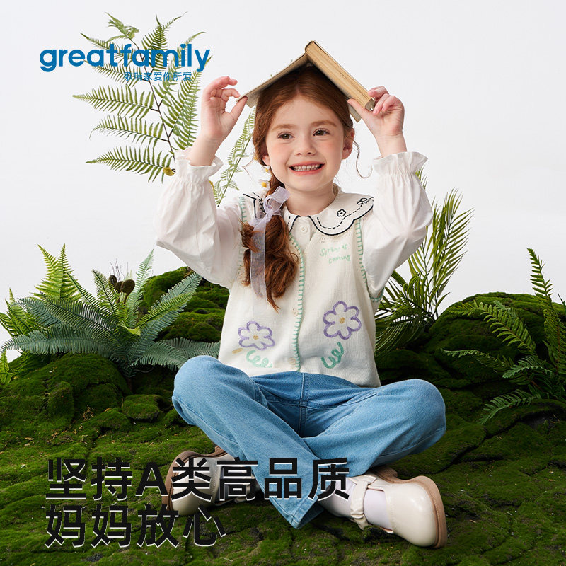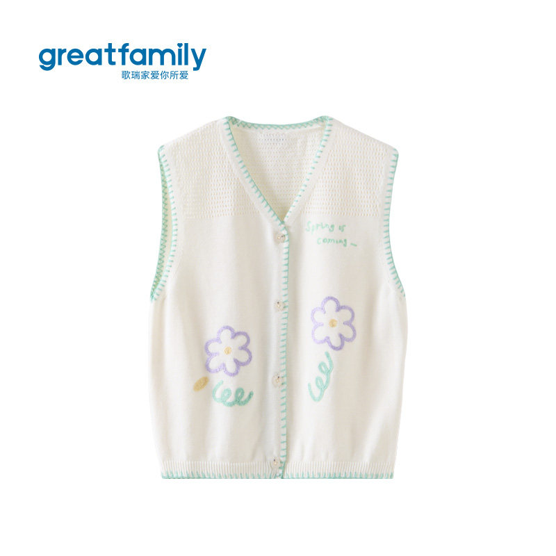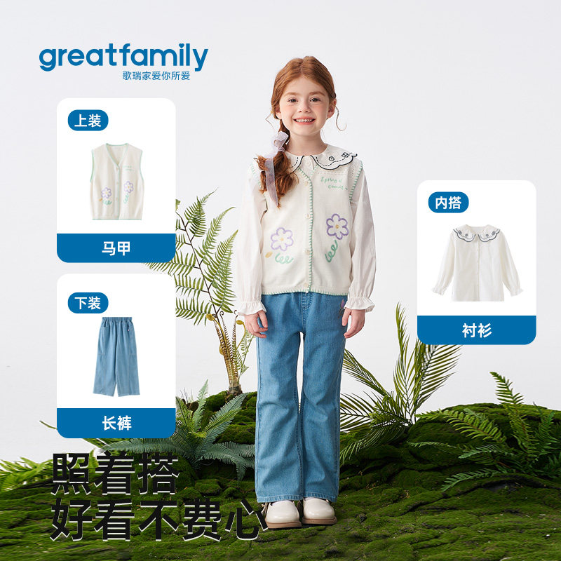 歌瑞家女童马甲2026春款户外出游运动内搭外穿保暖V领毛衣背心