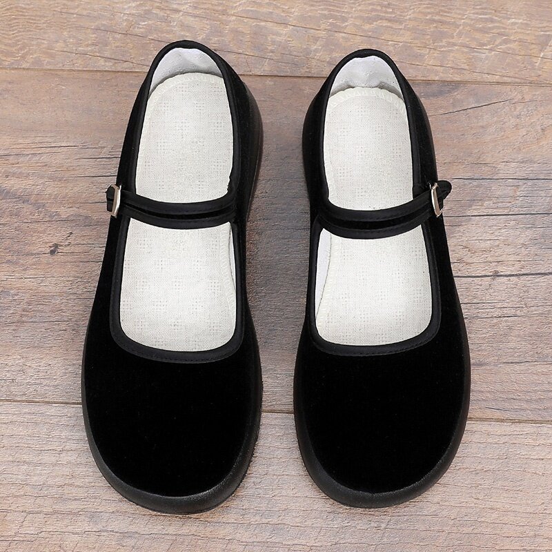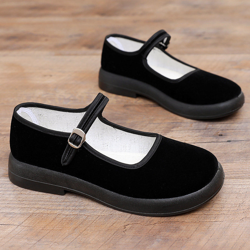 老北京布鞋女夏季宽头透气软底防滑黑色酒店上班工作鞋妈妈平绒鞋