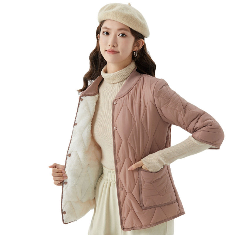 秋冬保暖加绒七分短袖棉衣中袖内胆女款中老年妈妈外套棉服上衣