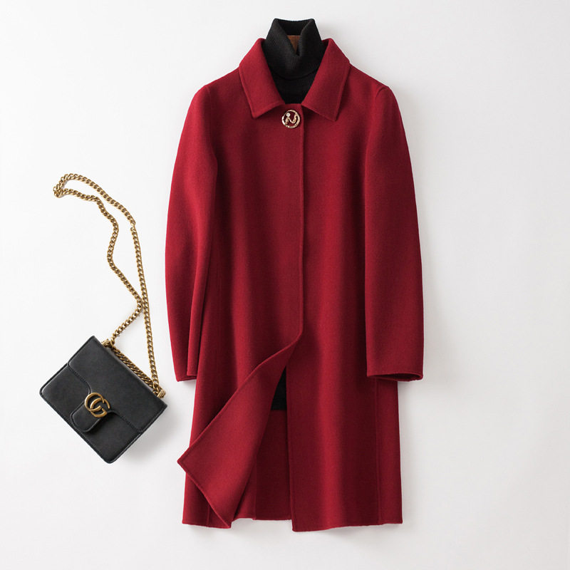 保暖羊毛外套年轻妈妈女装POLO领2026春秋季中长款时尚双面呢大衣