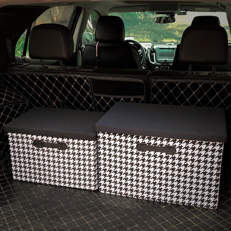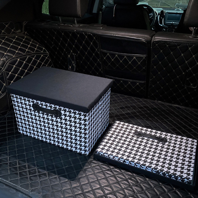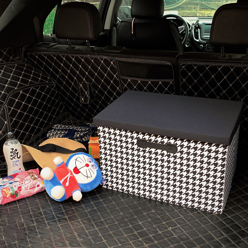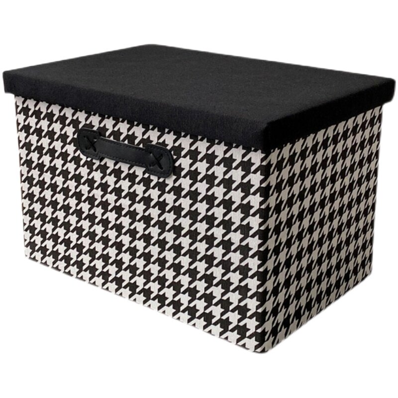 千鸟格带盖子收纳箱汽车后备箱收纳布艺大号衣物整理筐学生宿舍箱