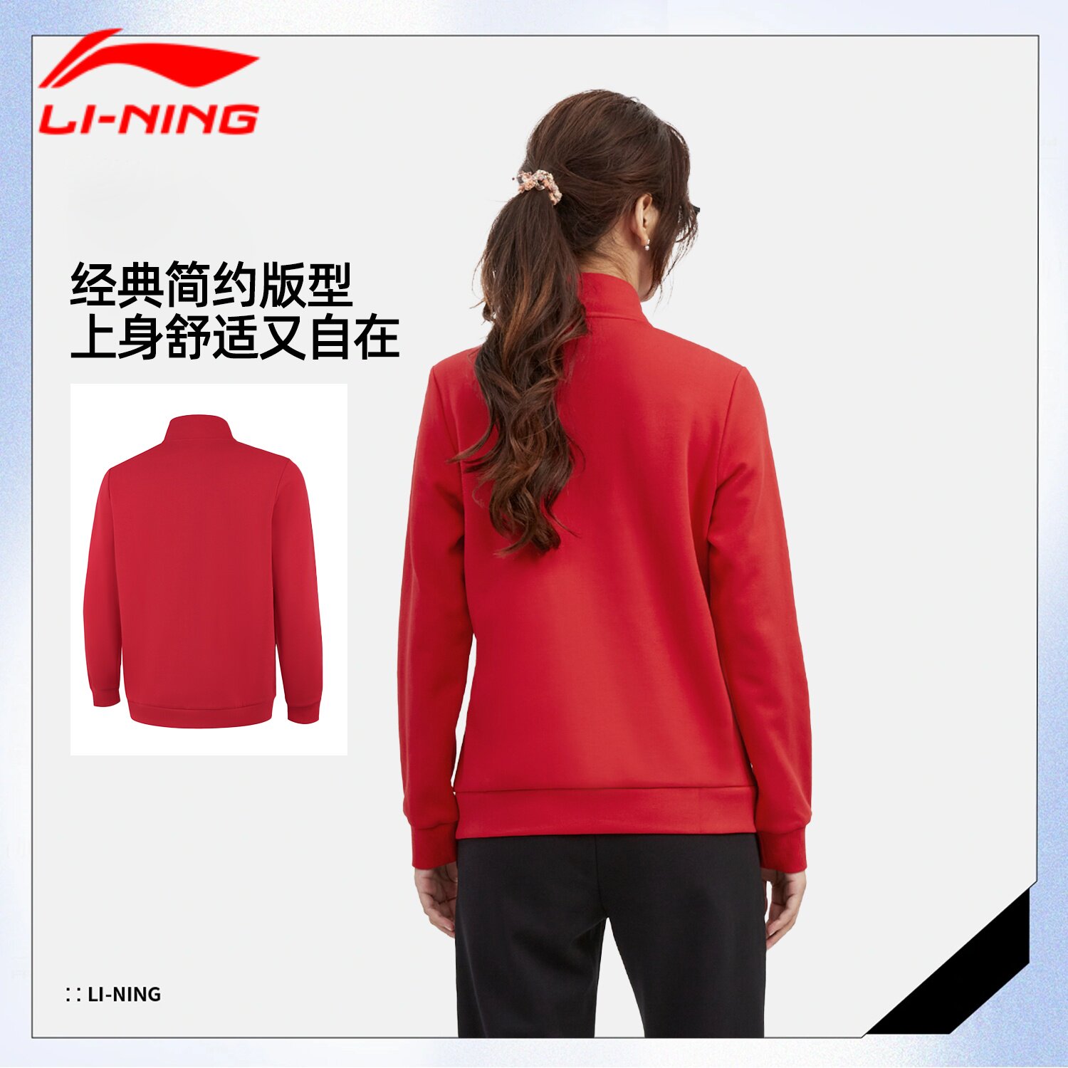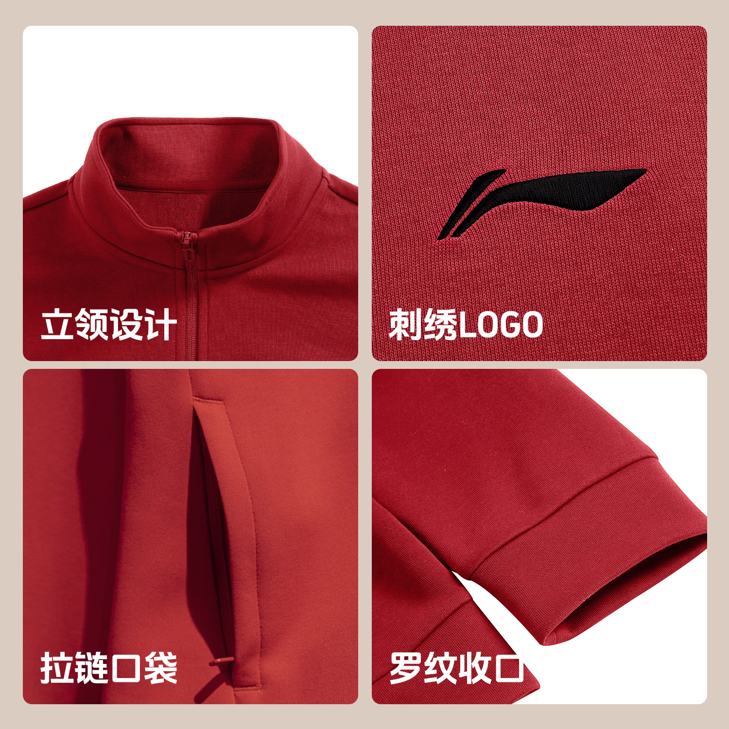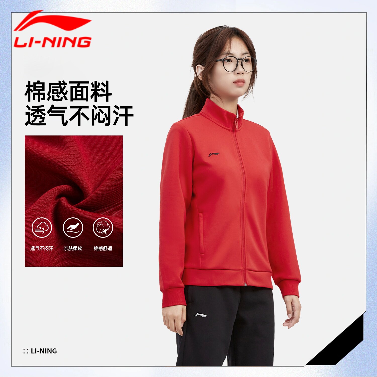 李宁开衫外套女款卫衣2026马年春季新款宽松中国红立领女士运动服