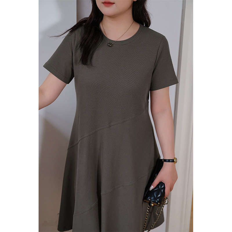 蓝若水大码女装休闲针织连衣裙胖mm夏季新品时尚收腰显瘦a字中裙