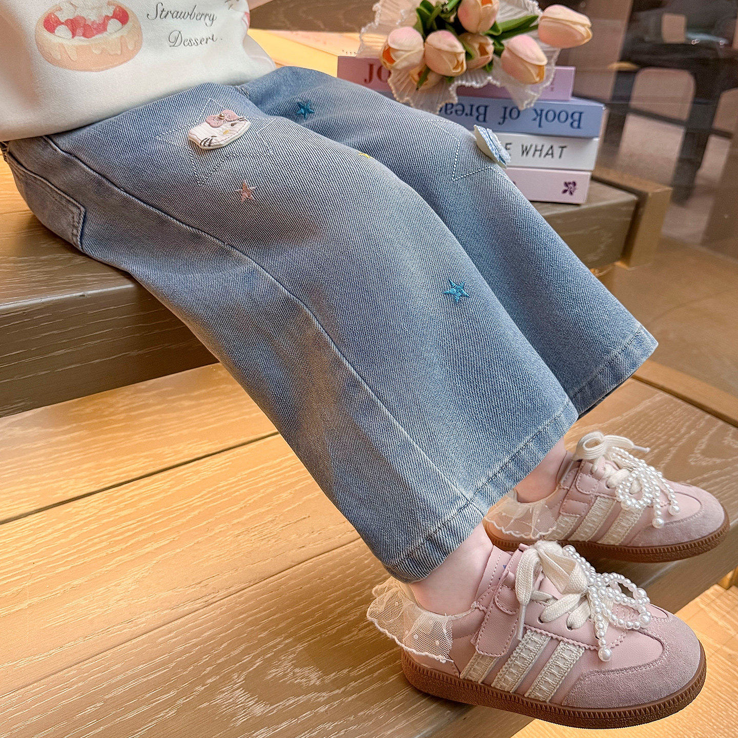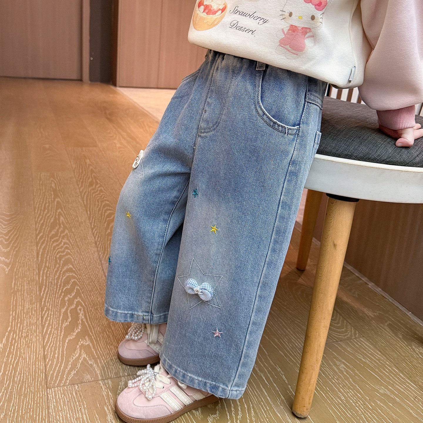 春装直春季裤子女童新款春秋牛仔裤款筒裤女宝宝阔腿儿童猫咪2026