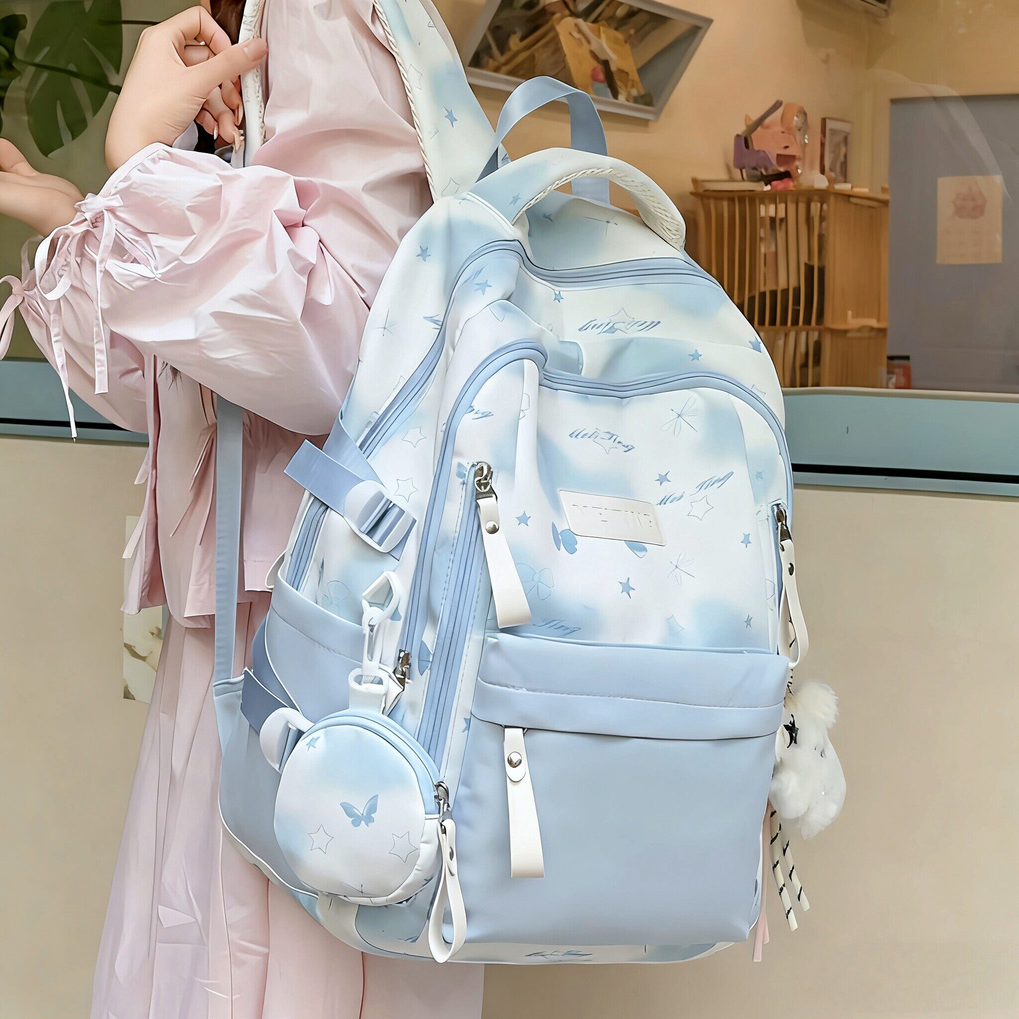 日本品质书包初中女生蓝色ins风高中生高颜值新款女大容量双肩包
