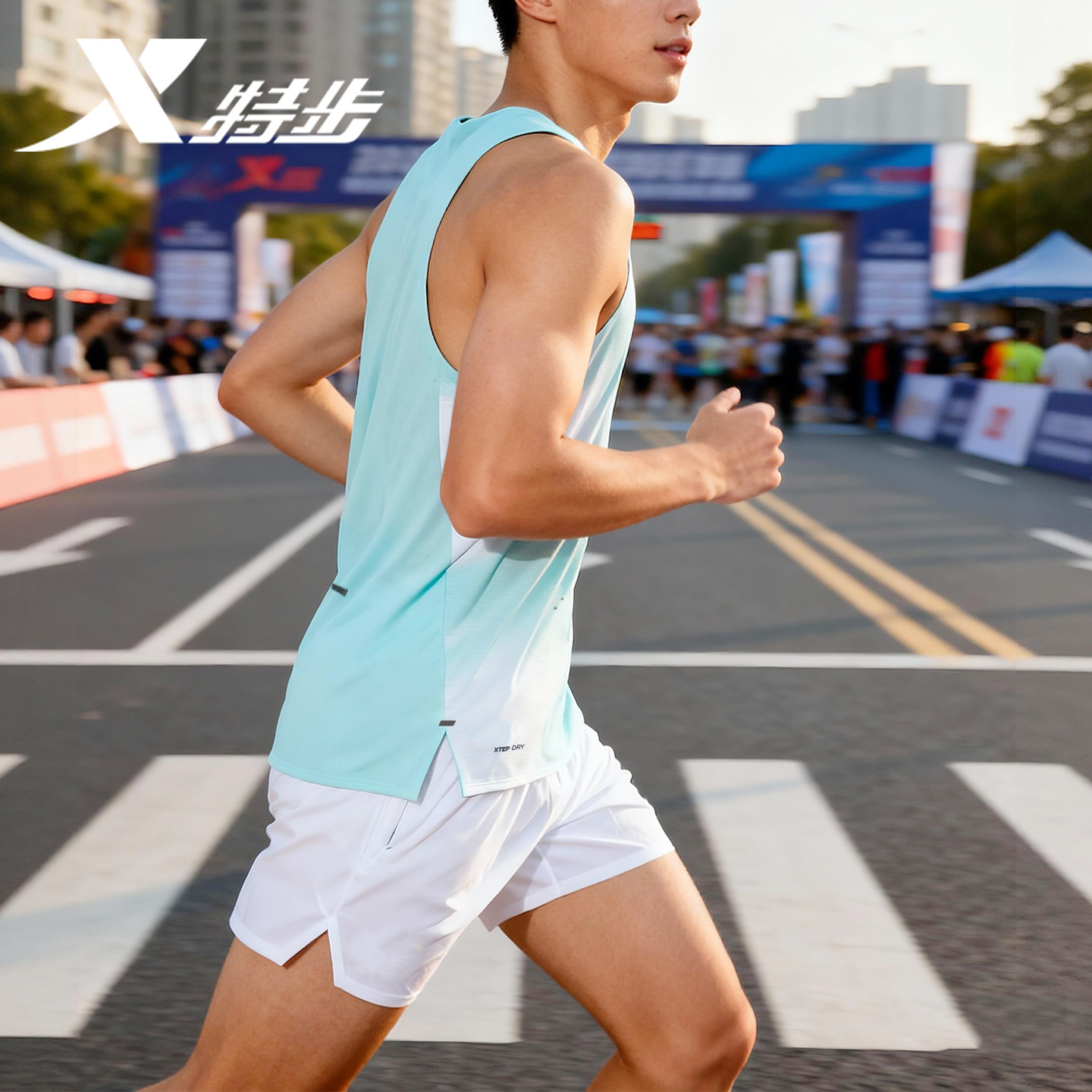 特步跑步背心男款马拉松竞速无袖速干衣T恤正品透气吸汗运动上衣